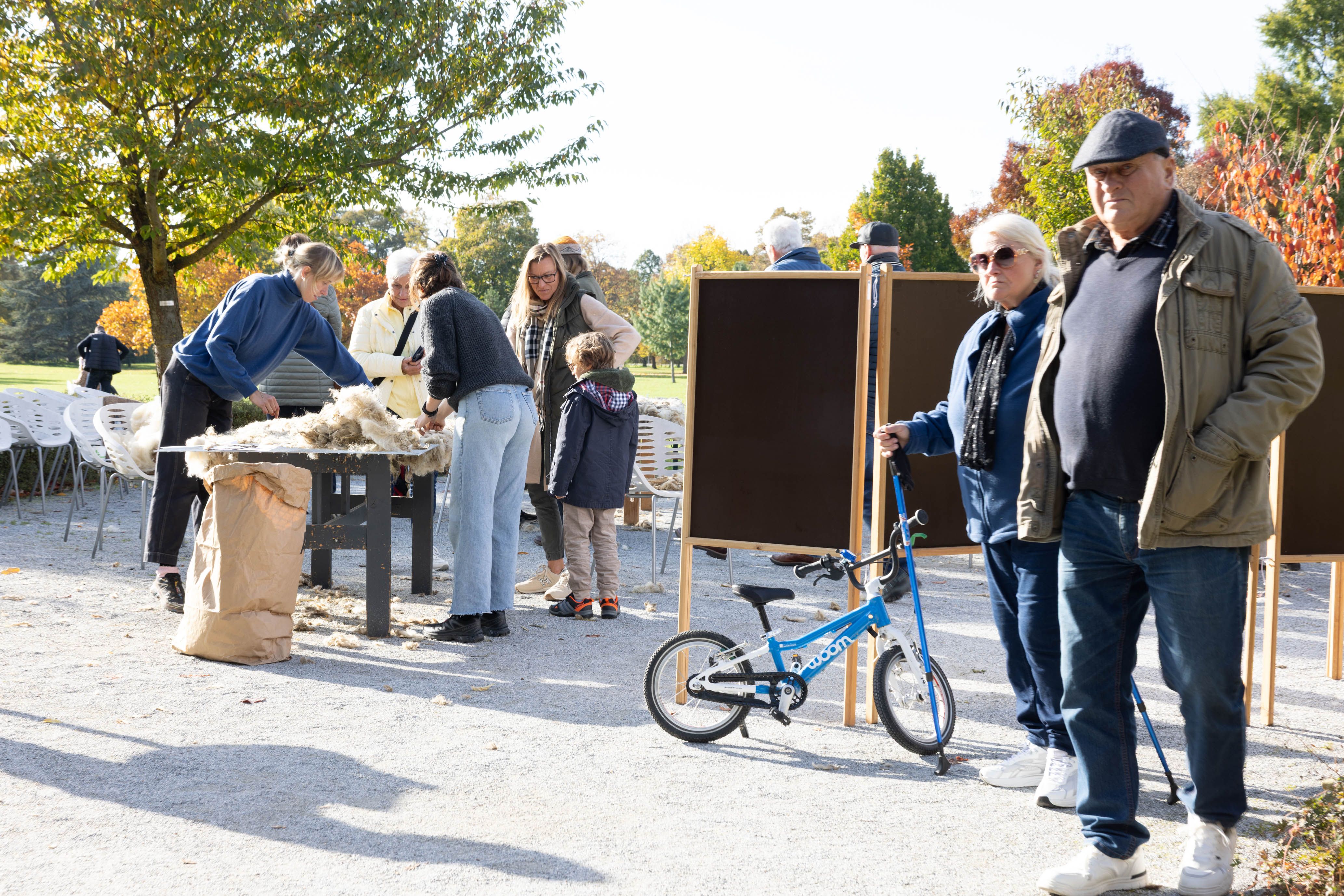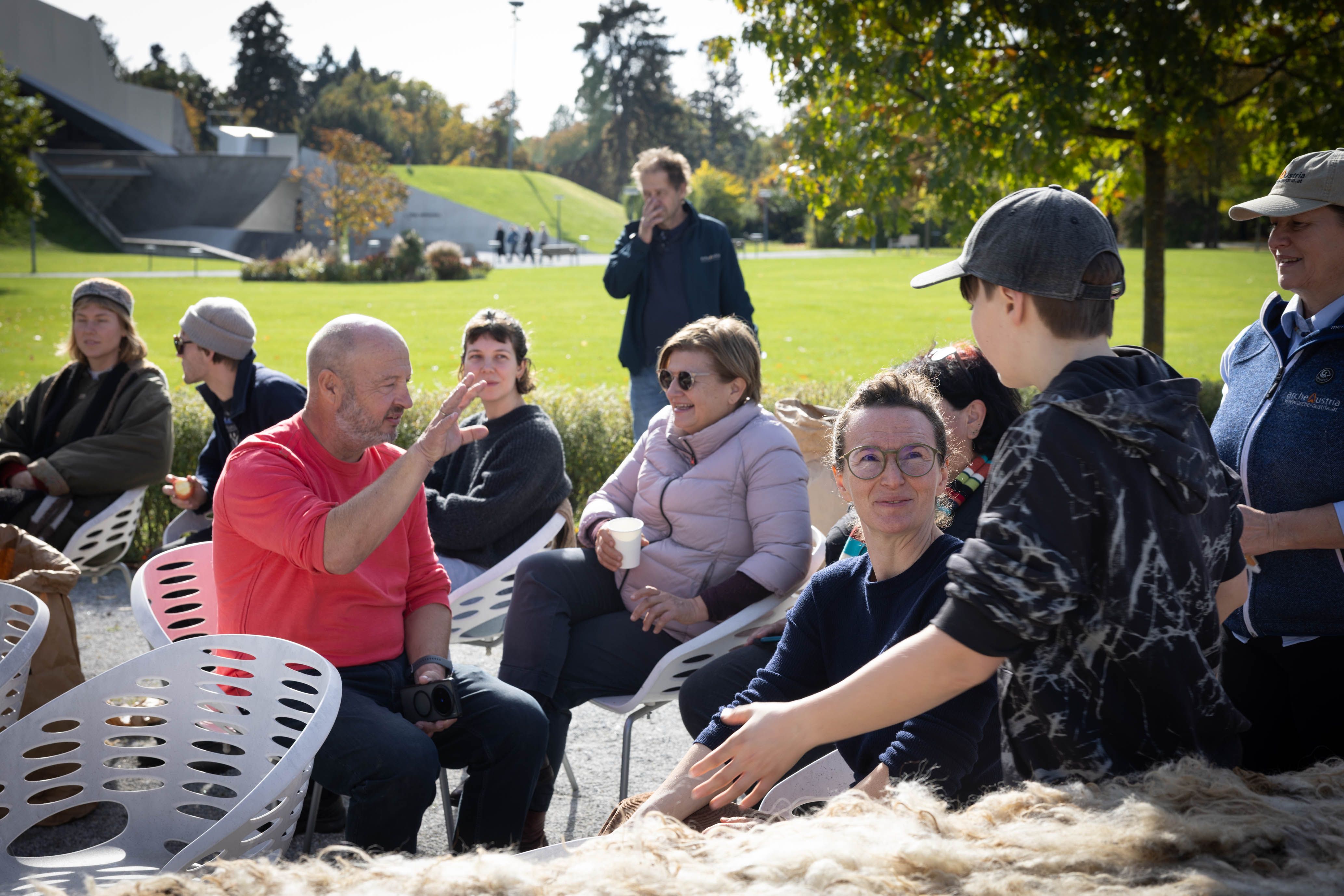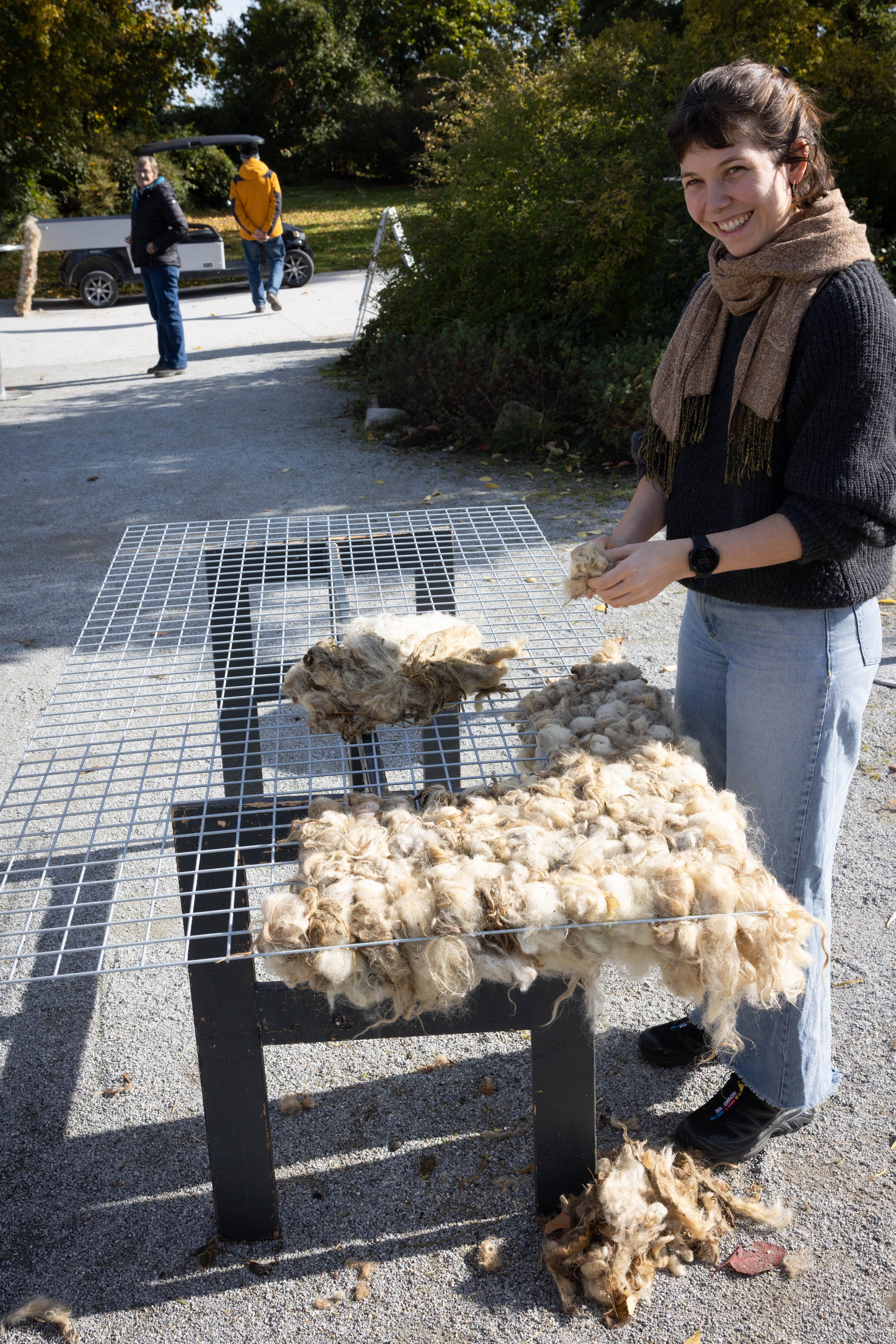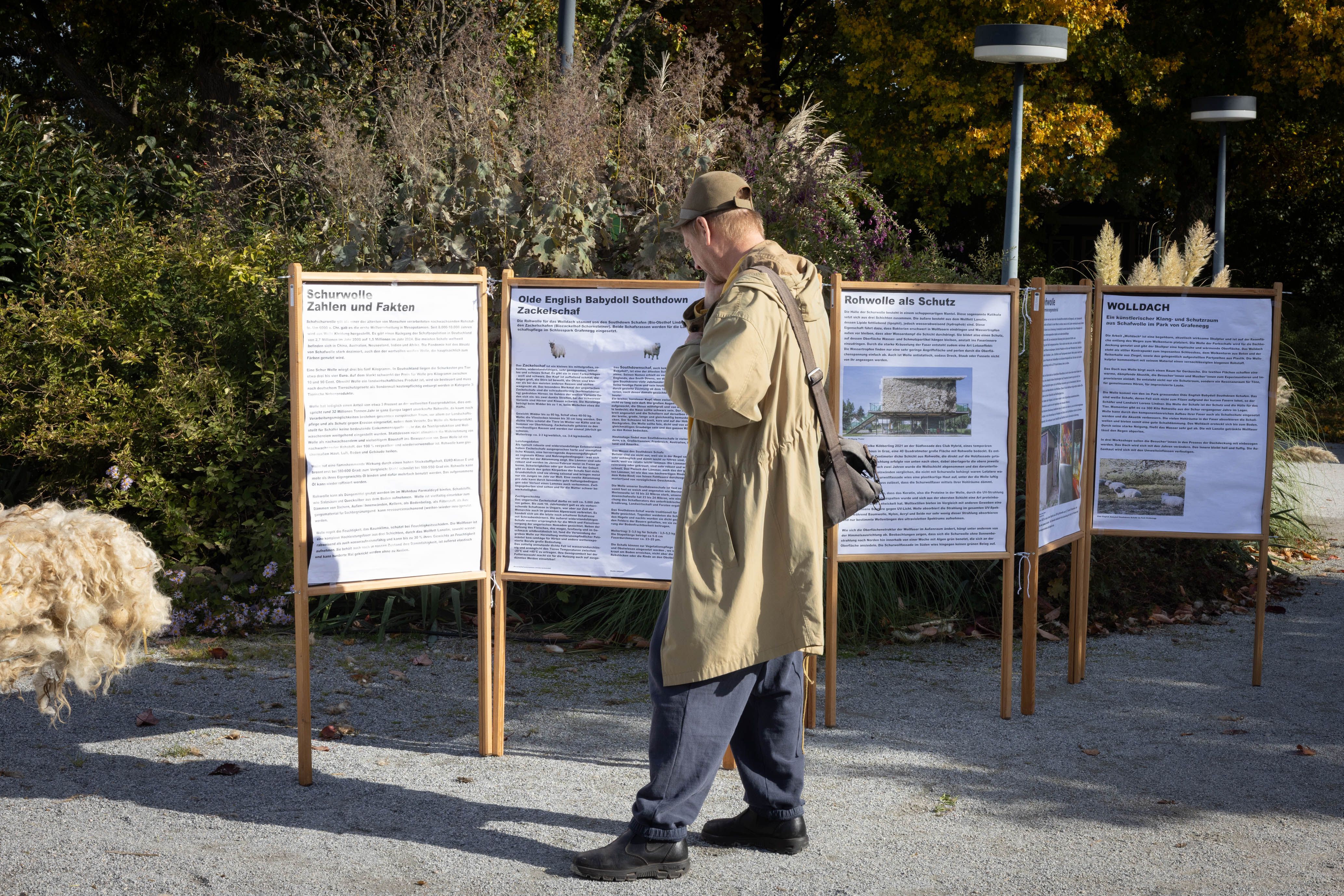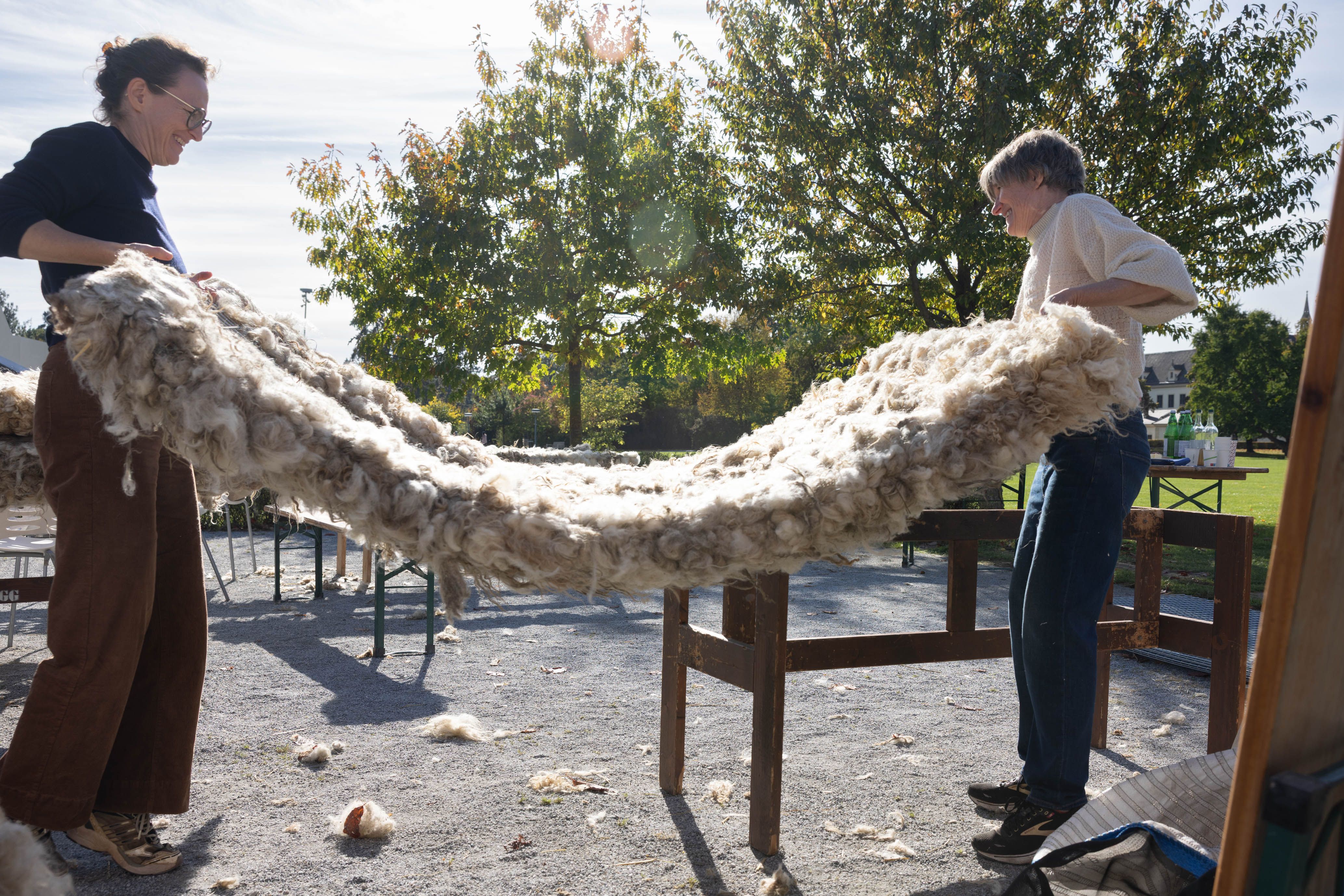 Von 17. bis 19. Oktober 2025 konnte man im Schlosspark Grafenegg bei der Entstehung einer künstlerischen Skulptur mithelfen: Folke Köbberlings WOLLDACH (Fertigstellung Frühjahr 2026), hat im Rahmen eines Workshops mithilfe vieler Interessierter bereits Form bzw. Wolle angenommen. Gemeinsam wurde bei schönstem Herbstwetter Rohwolle gewebt und die Künstlerin informierte über diesen faszinierenden und viel zu wenig geschätzten Rohstoff.