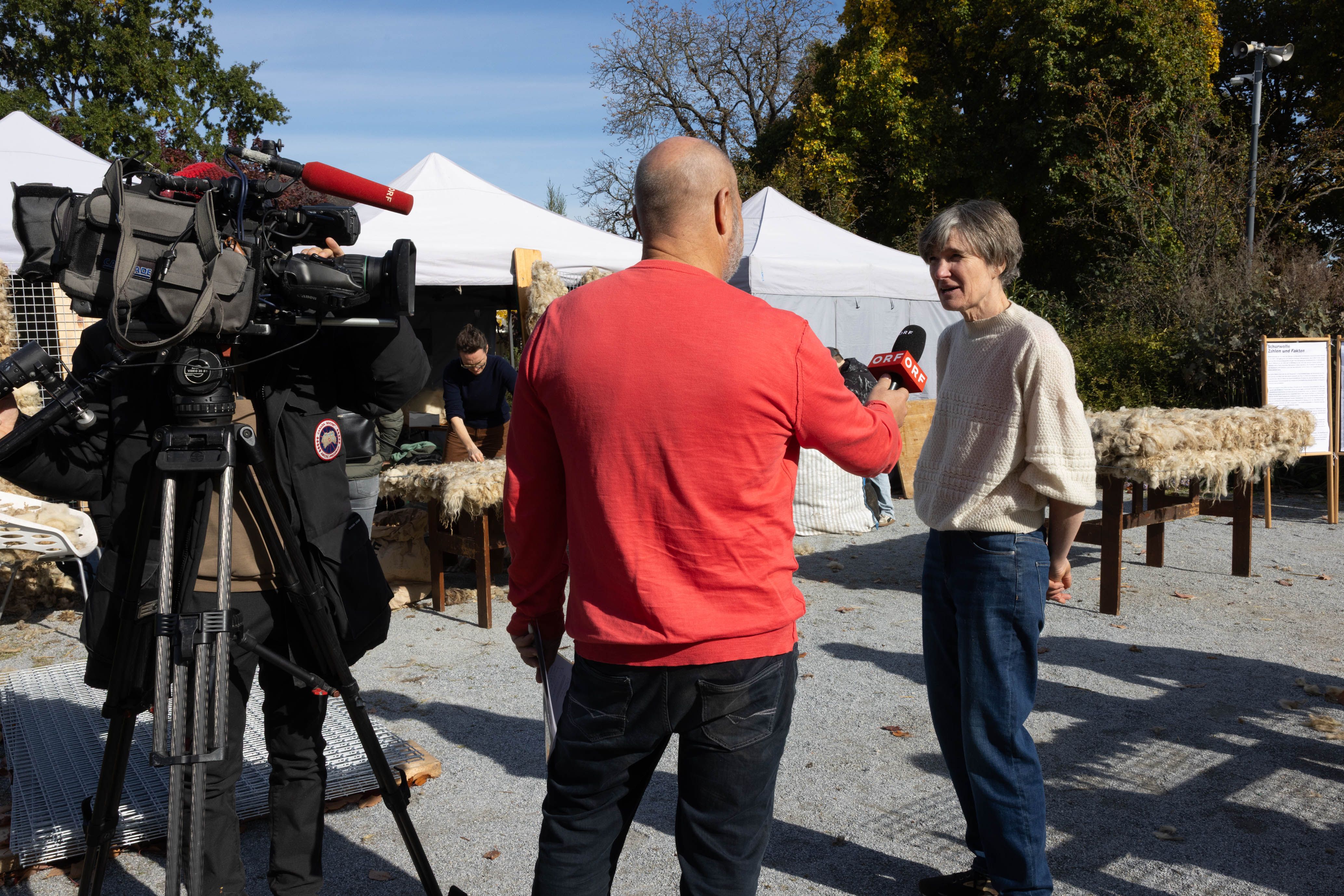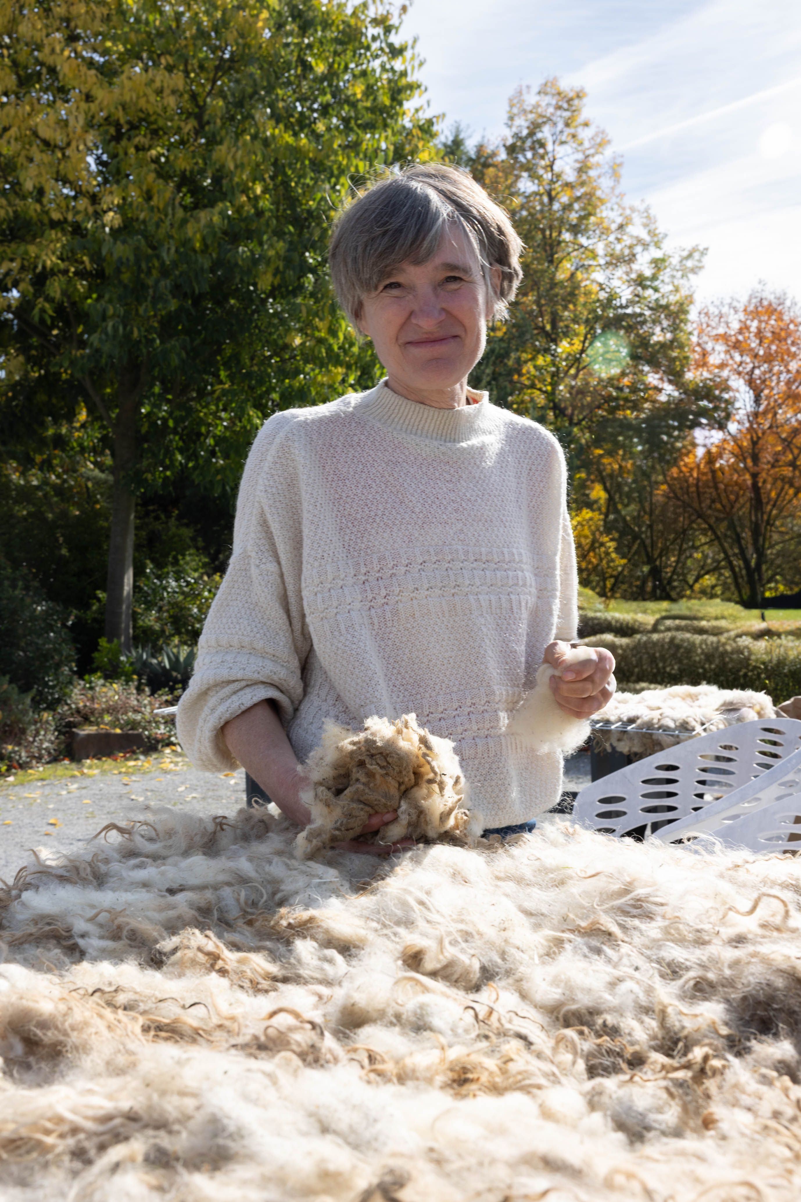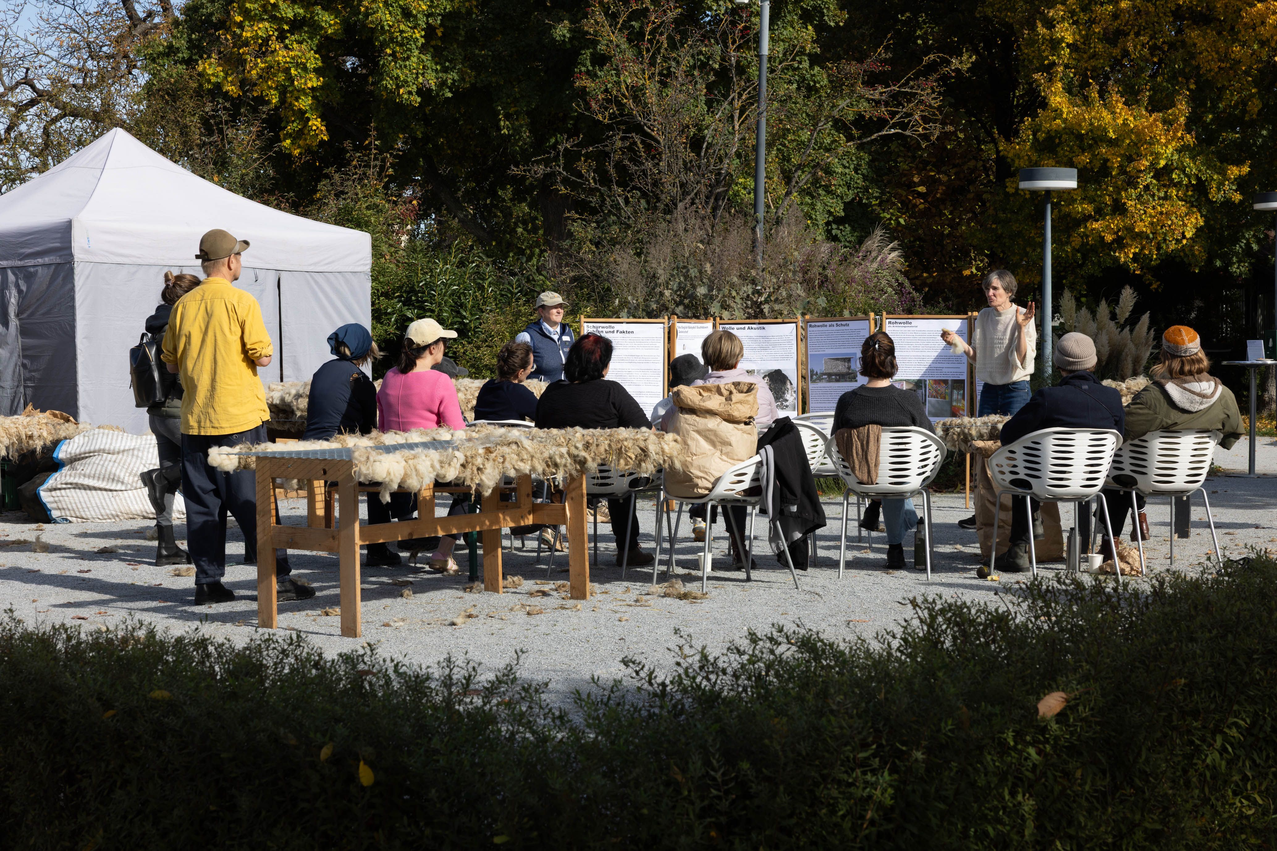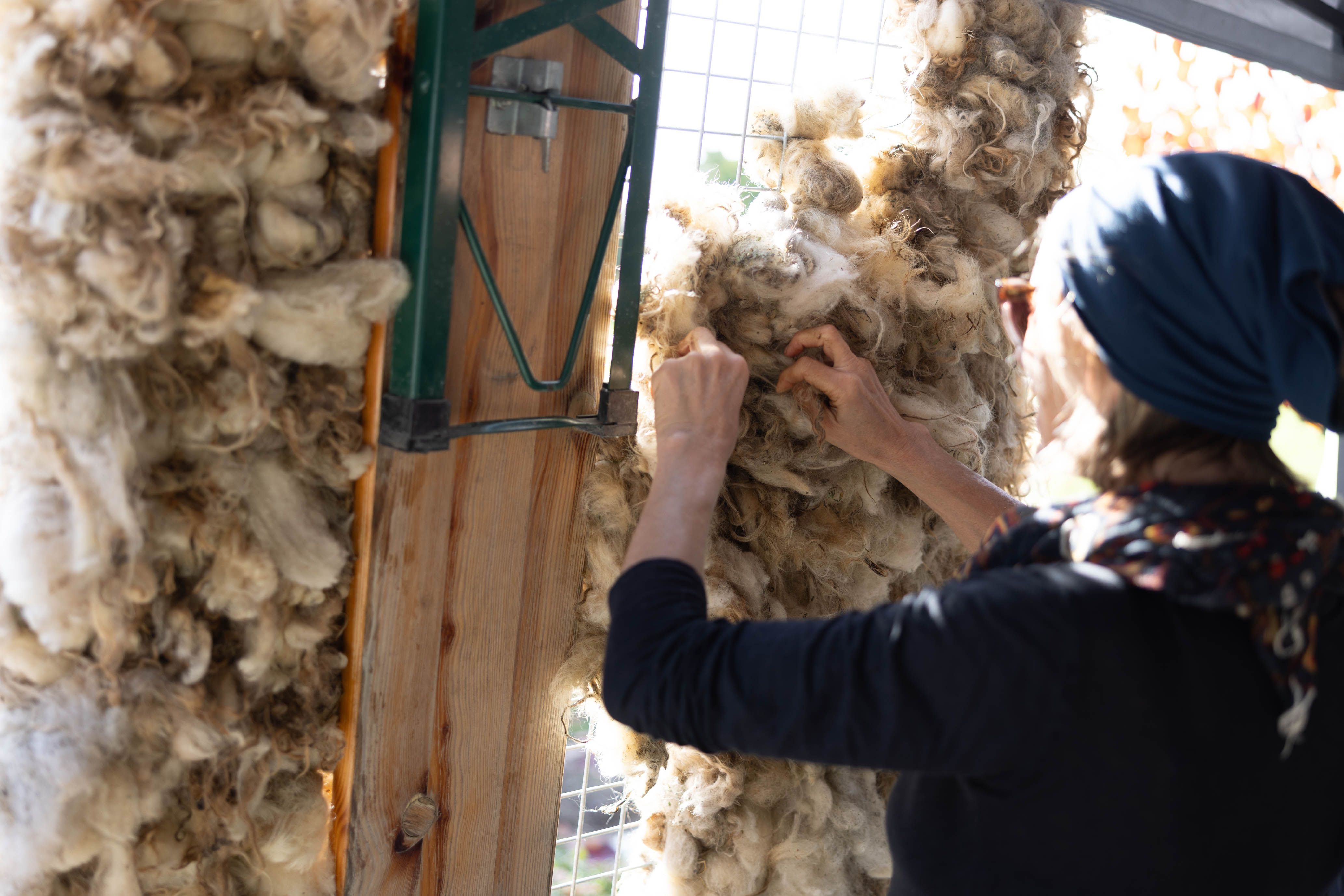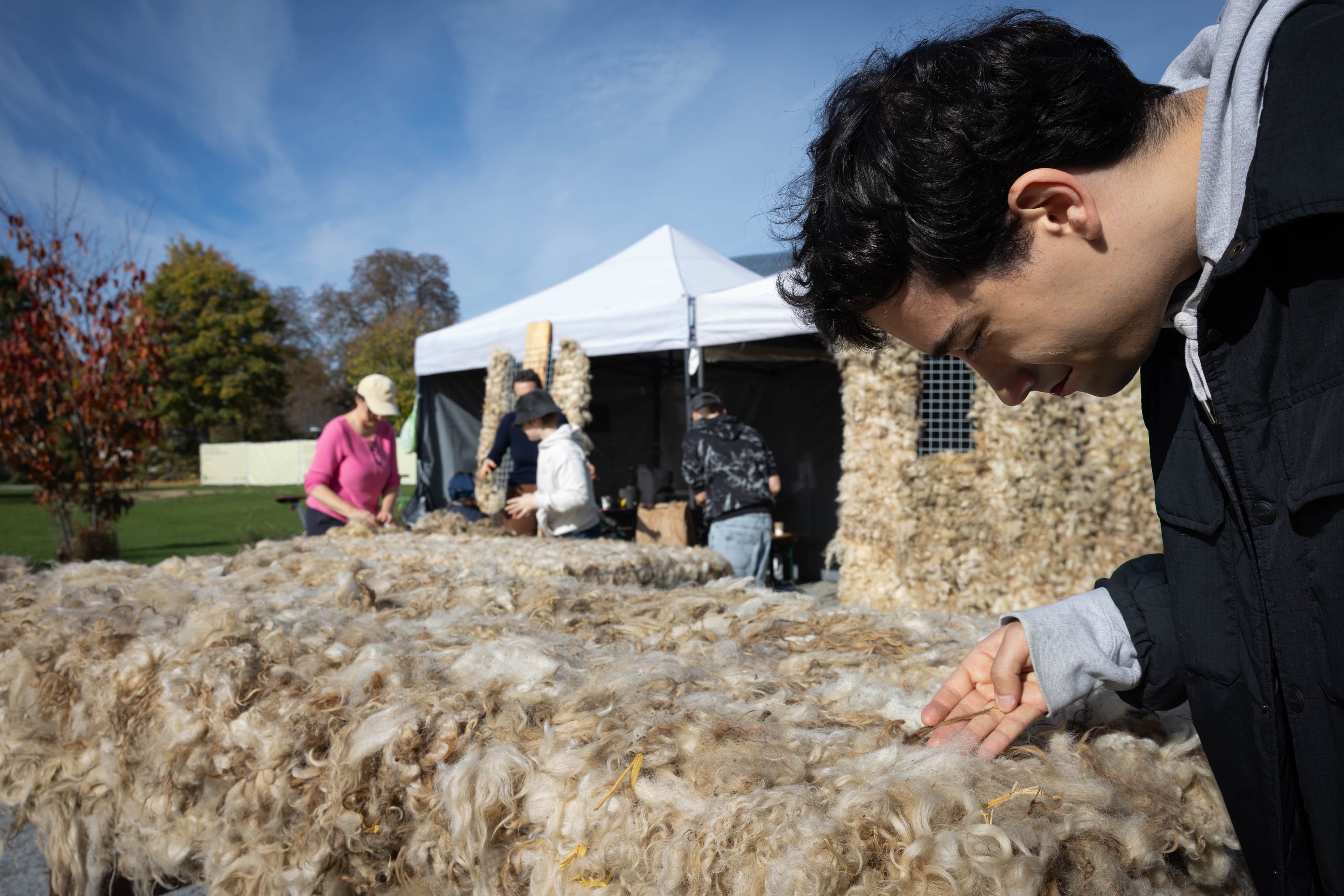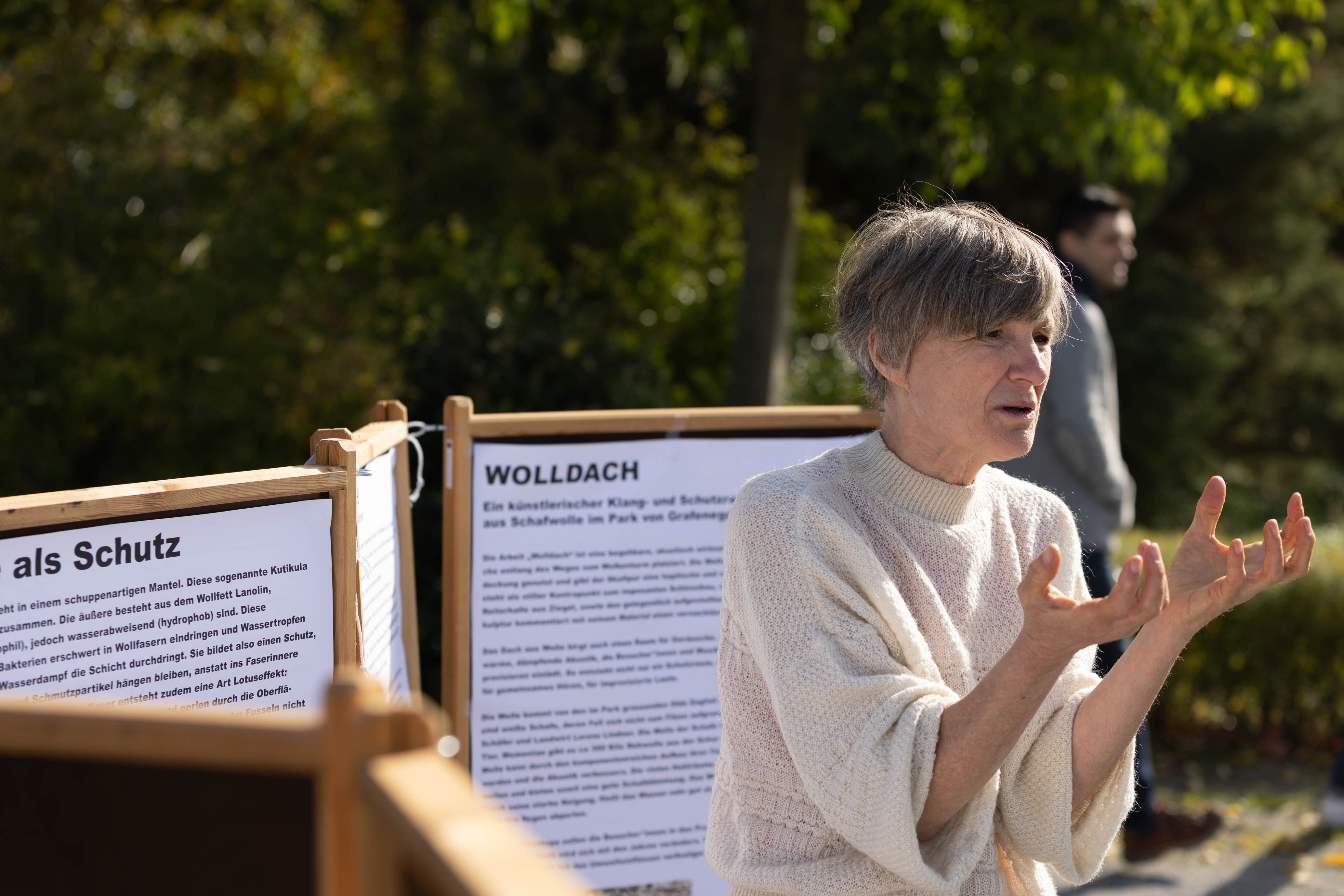 Von 17. bis 19. Oktober 2025 konnte man im Schlosspark Grafenegg bei der Entstehung einer künstlerischen Skulptur mithelfen: Folke Köbberlings WOLLDACH (Fertigstellung Frühjahr 2026), hat im Rahmen eines Workshops mithilfe vieler Interessierter bereits Form bzw. Wolle angenommen. Gemeinsam wurde bei schönstem Herbstwetter Rohwolle gewebt und die Künstlerin informierte über diesen faszinierenden und viel zu wenig geschätzten Rohstoff.