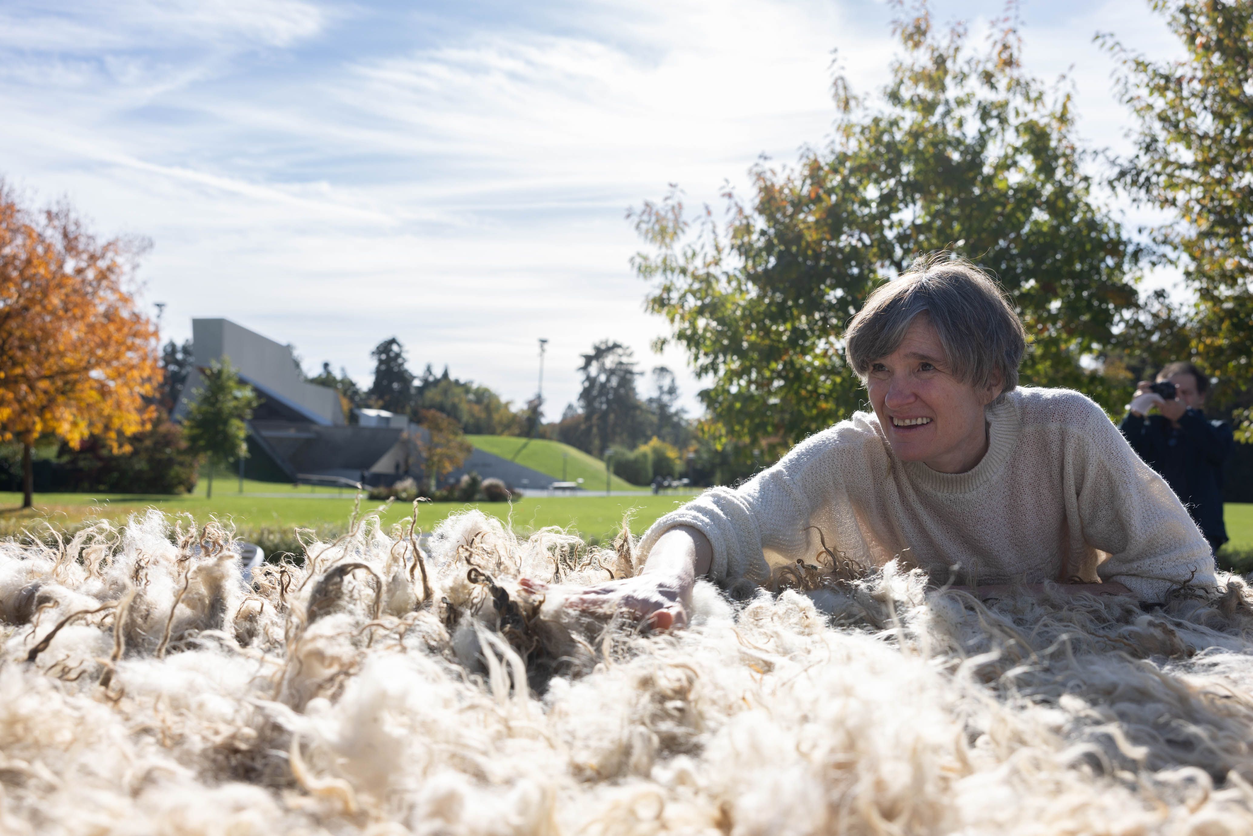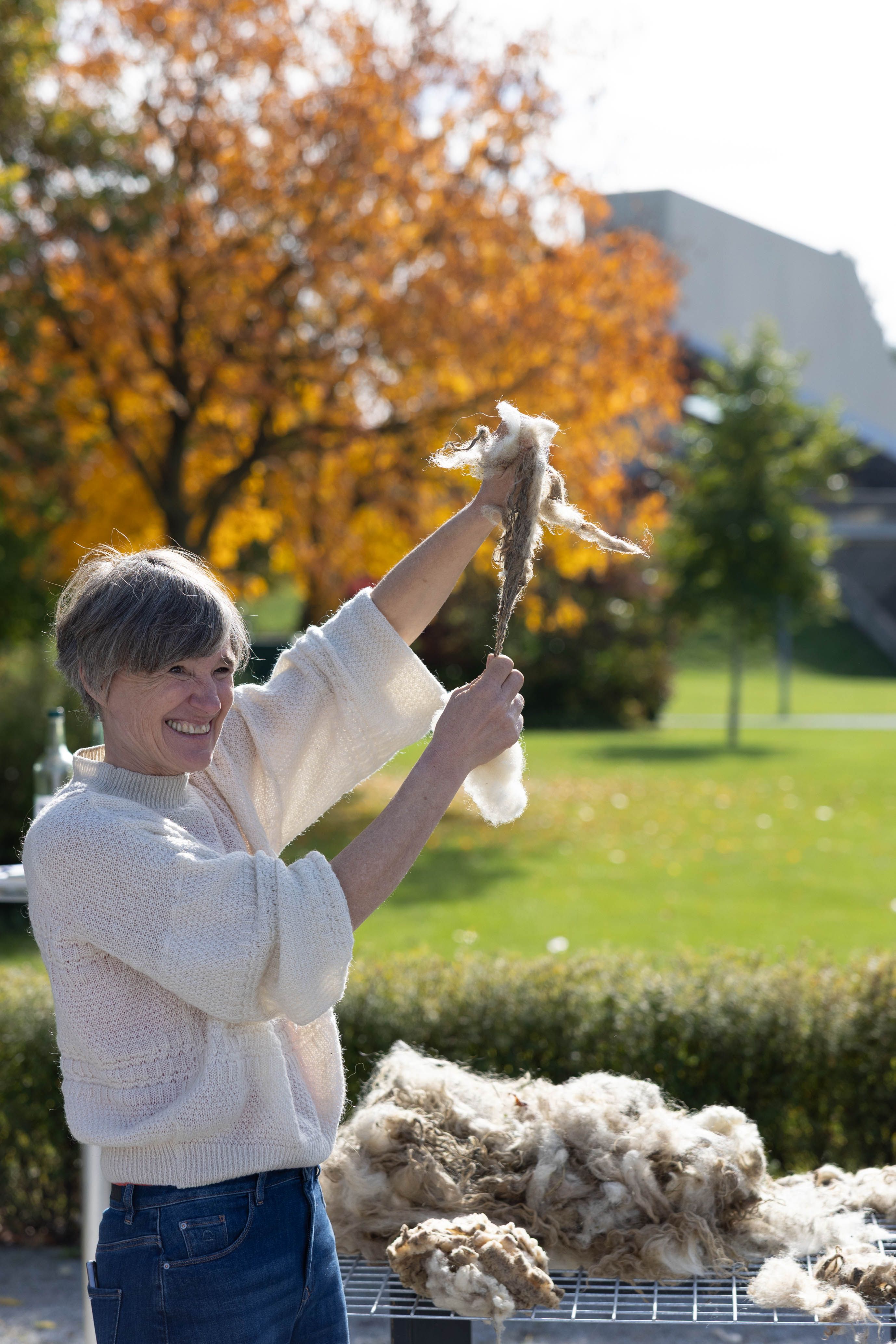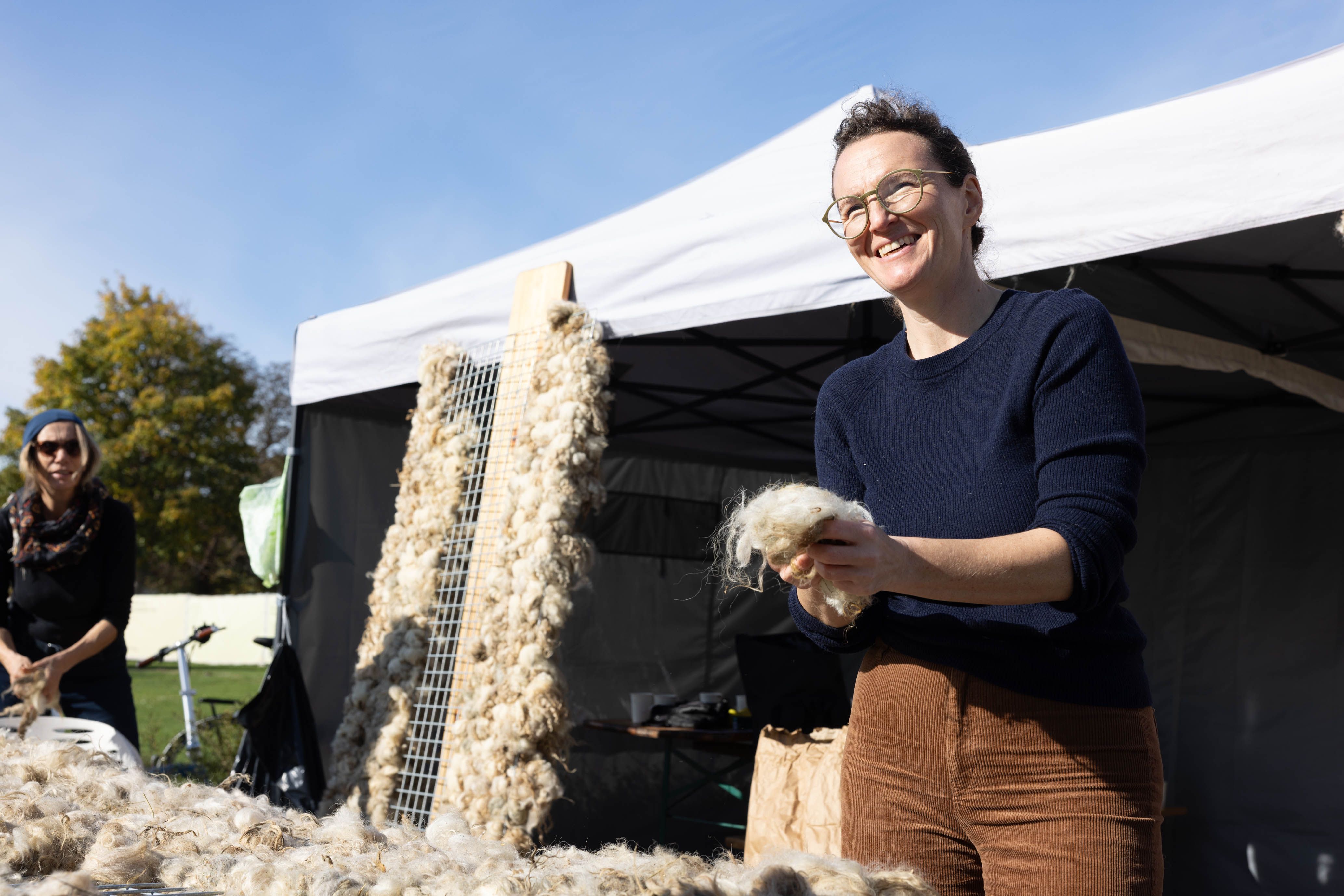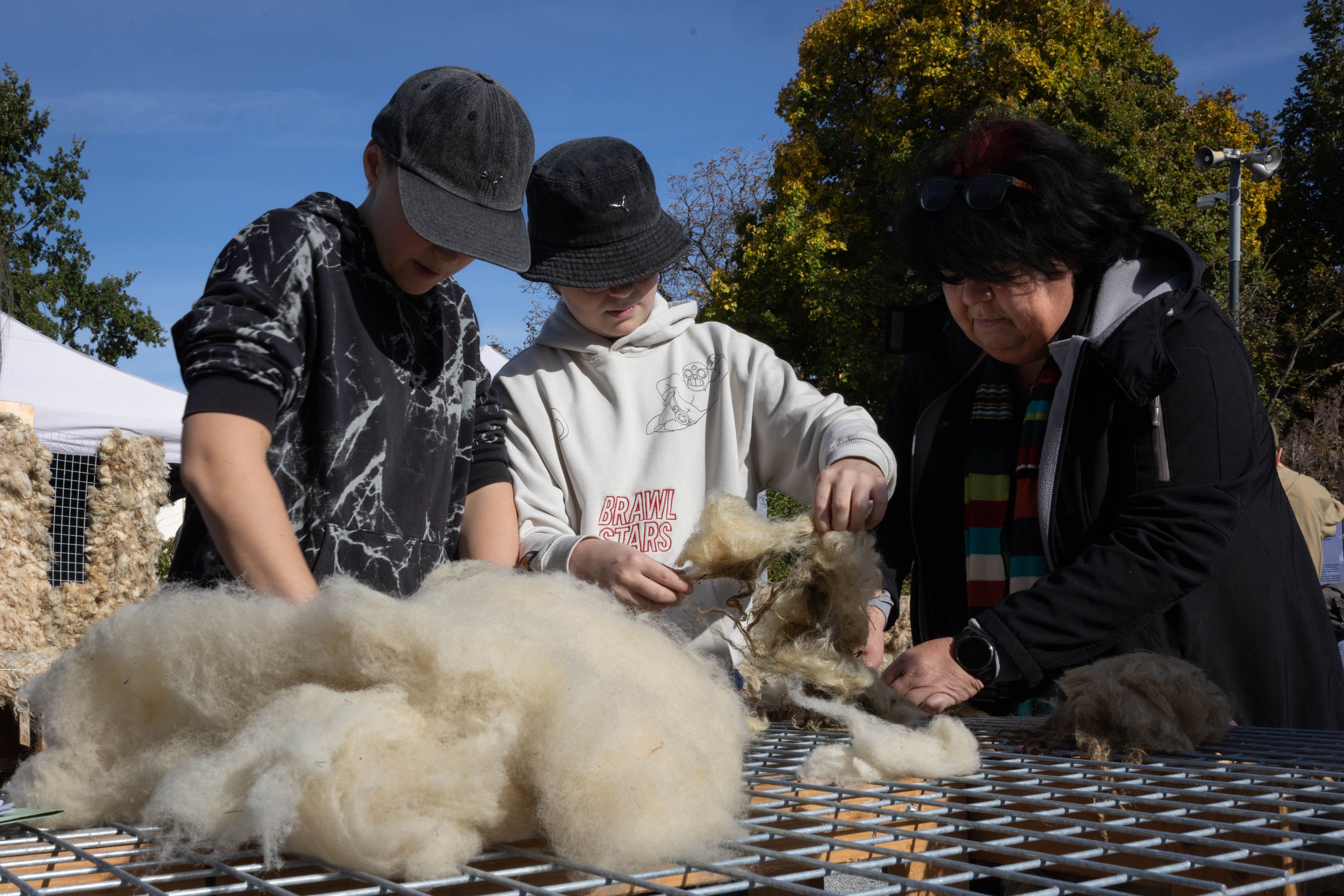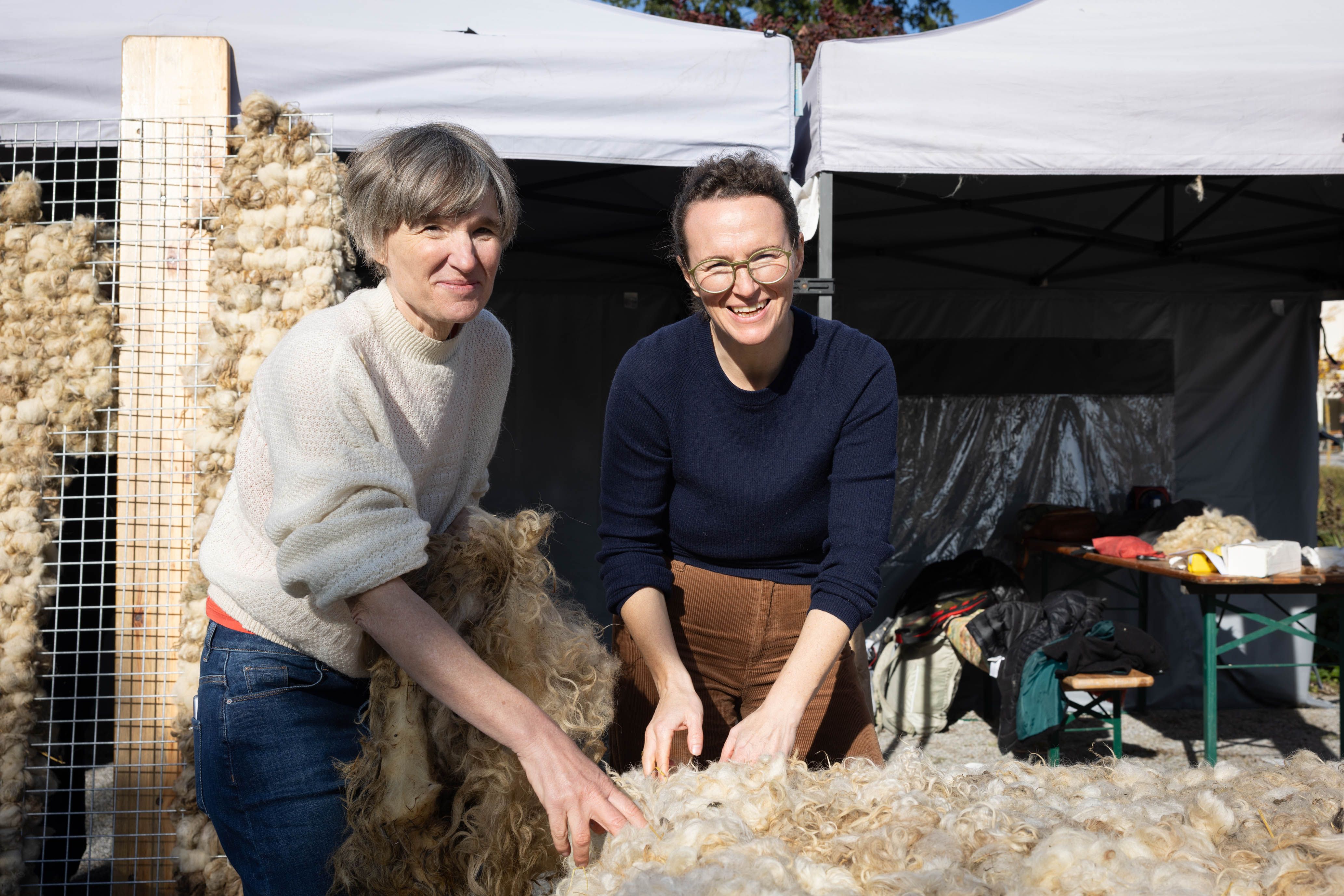 Von 17. bis 19. Oktober 2025 konnte man im Schlosspark Grafenegg bei der Entstehung einer künstlerischen Skulptur mithelfen: Folke Köbberlings WOLLDACH (Fertigstellung Frühjahr 2026), hat im Rahmen eines Workshops mithilfe vieler Interessierter bereits Form bzw. Wolle angenommen. Gemeinsam wurde bei schönstem Herbstwetter Rohwolle gewebt und die Künstlerin informierte über diesen faszinierenden und viel zu wenig geschätzten Rohstoff.