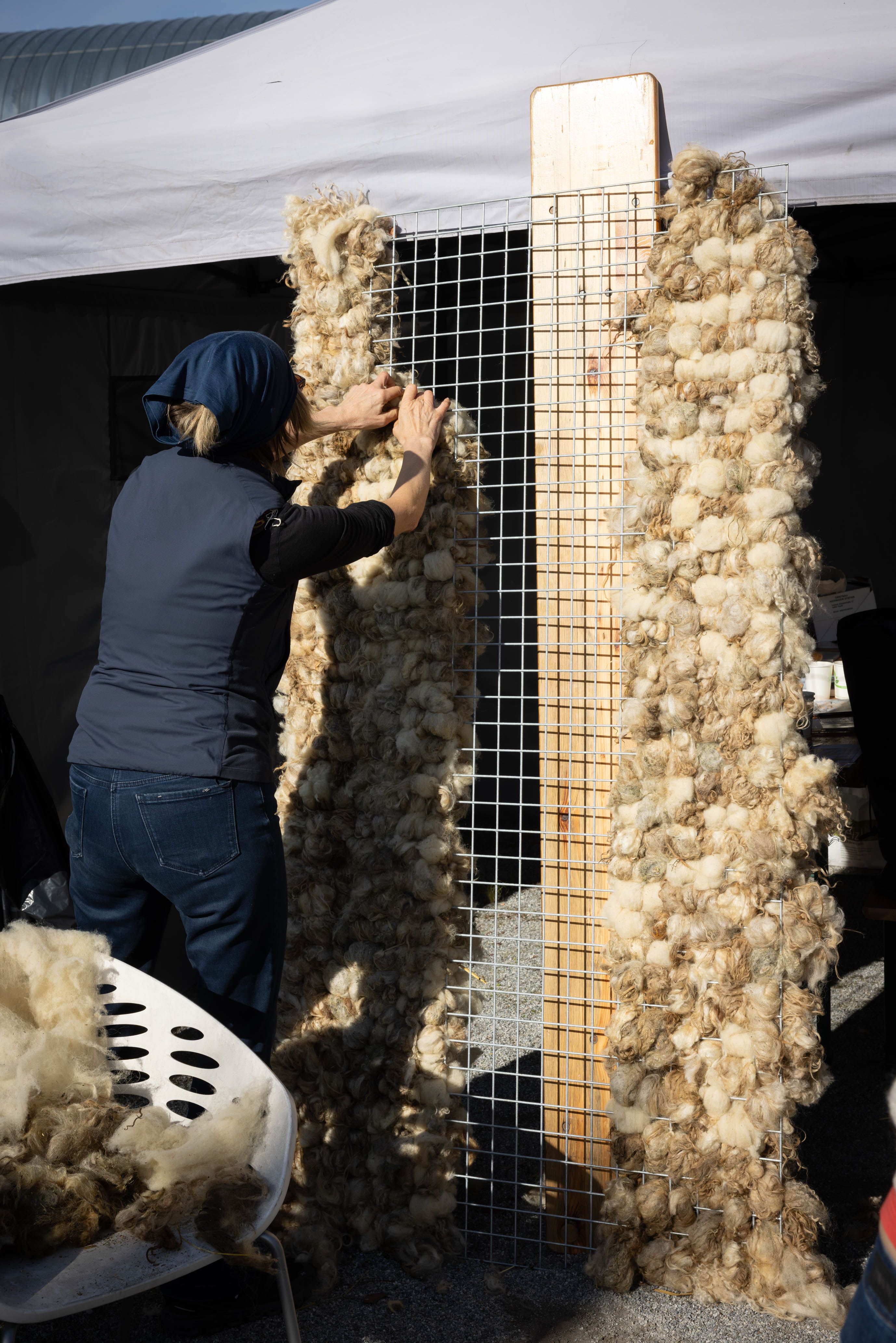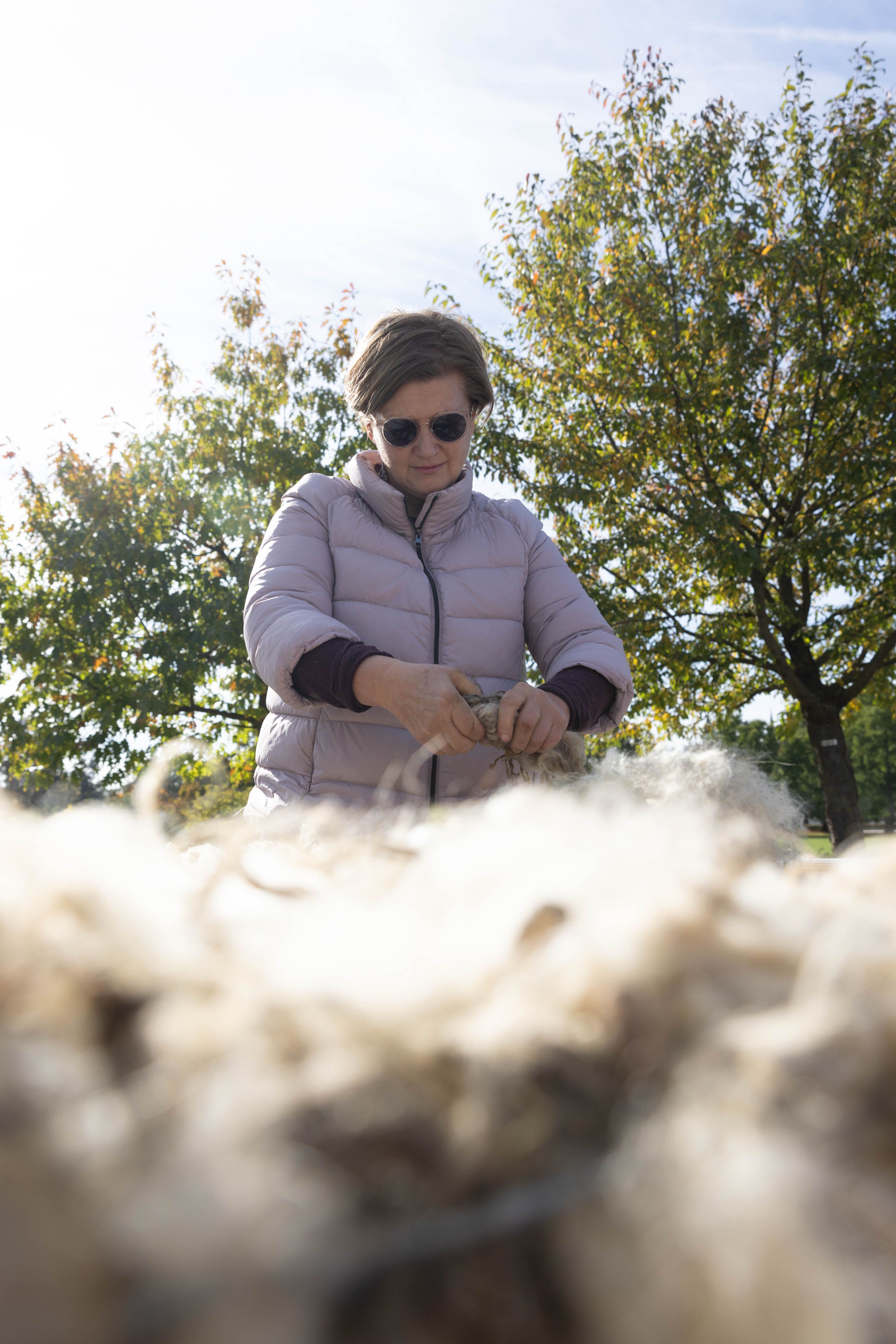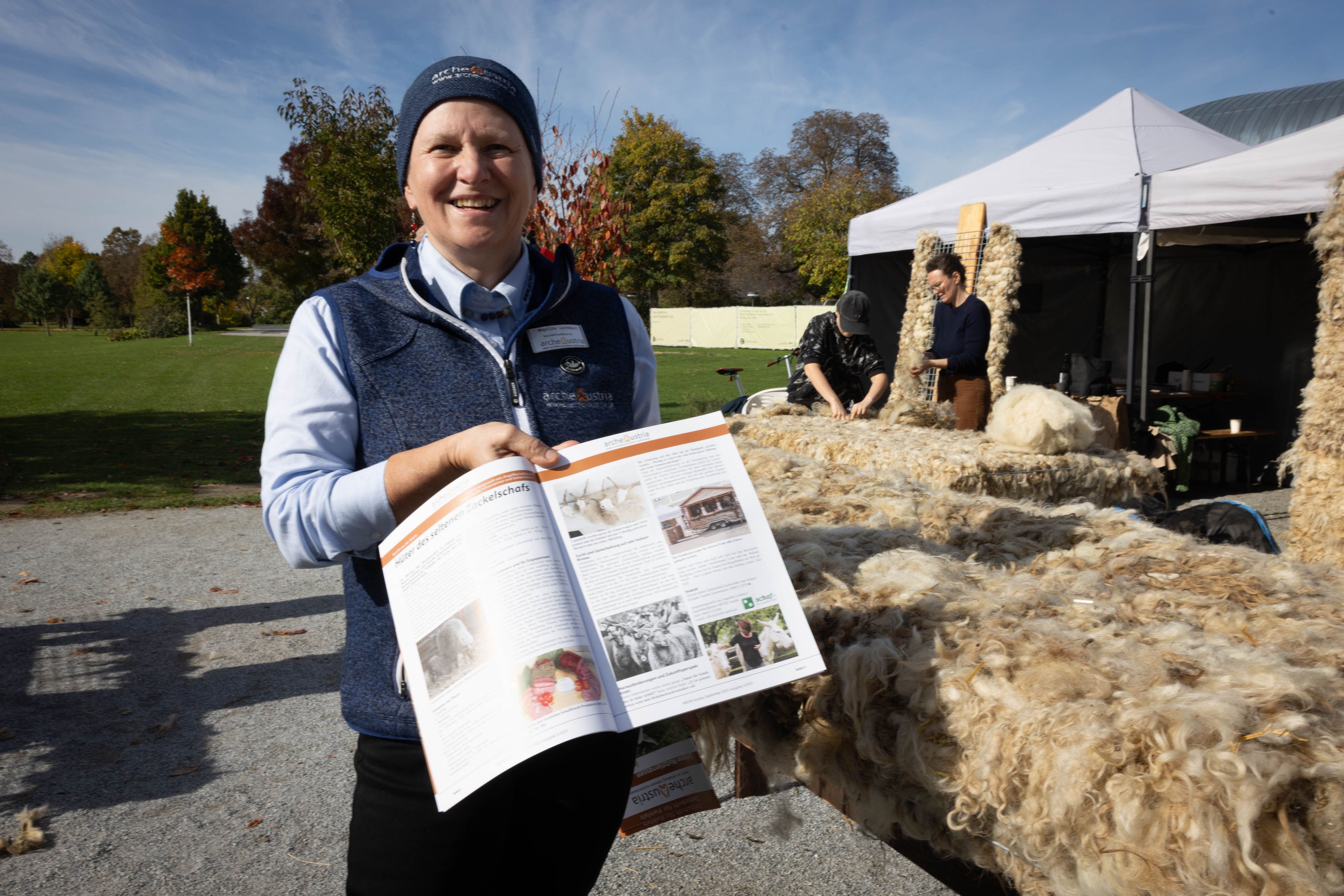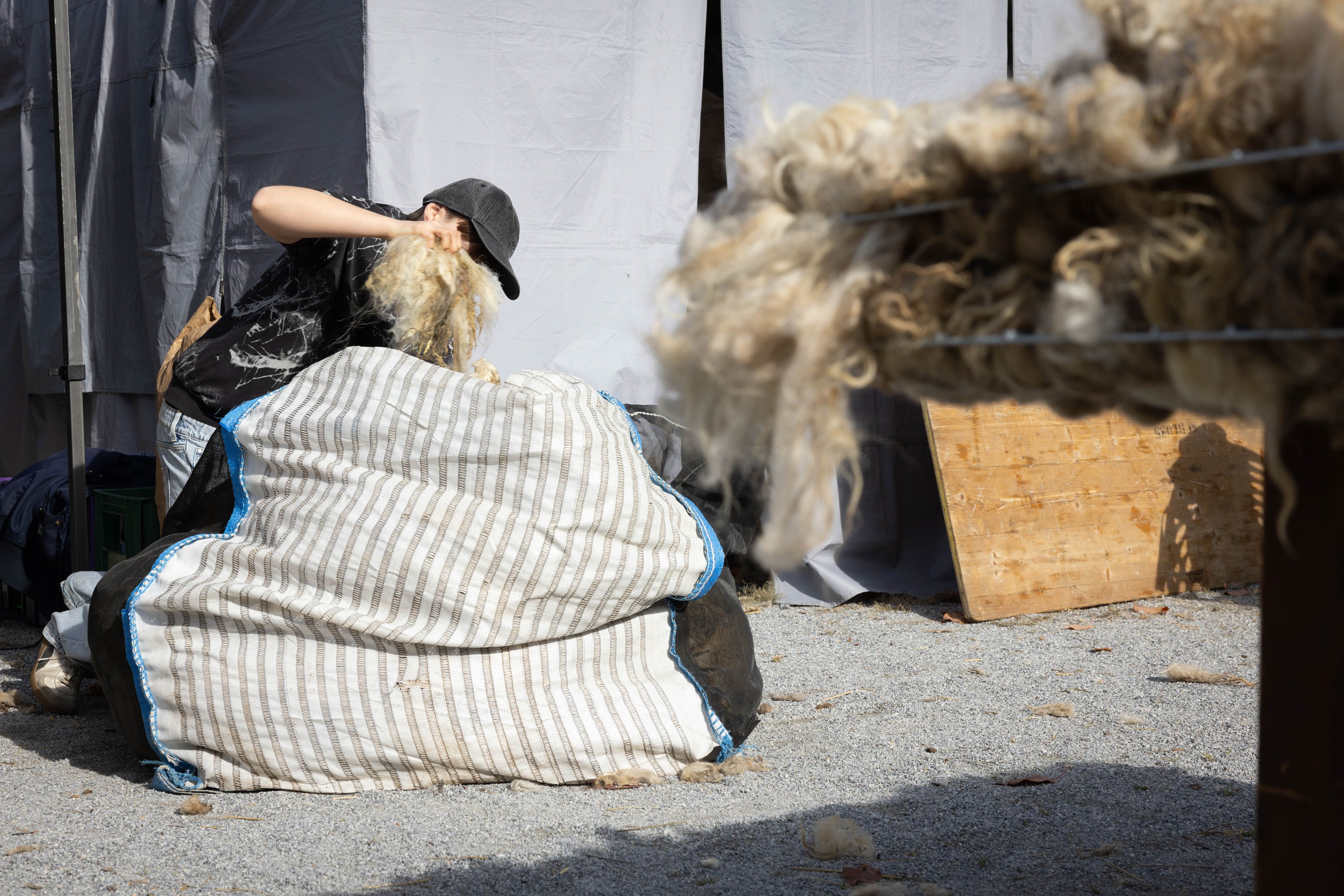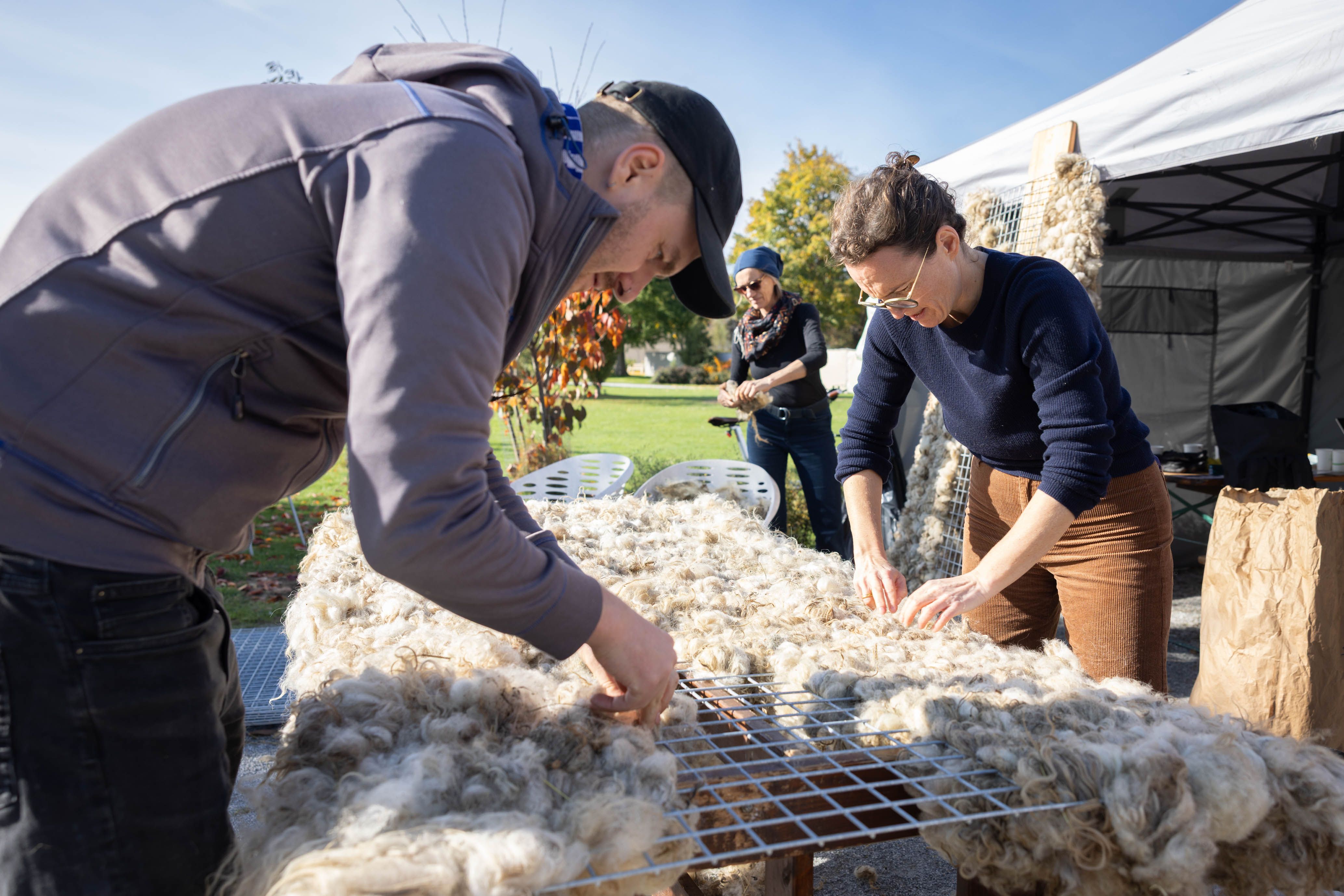 Von 17. bis 19. Oktober 2025 konnte man im Schlosspark Grafenegg bei der Entstehung einer künstlerischen Skulptur mithelfen: Folke Köbberlings WOLLDACH (Fertigstellung Frühjahr 2026), hat im Rahmen eines Workshops mithilfe vieler Interessierter bereits Form bzw. Wolle angenommen. Gemeinsam wurde bei schönstem Herbstwetter Rohwolle gewebt und die Künstlerin informierte über diesen faszinierenden und viel zu wenig geschätzten Rohstoff.