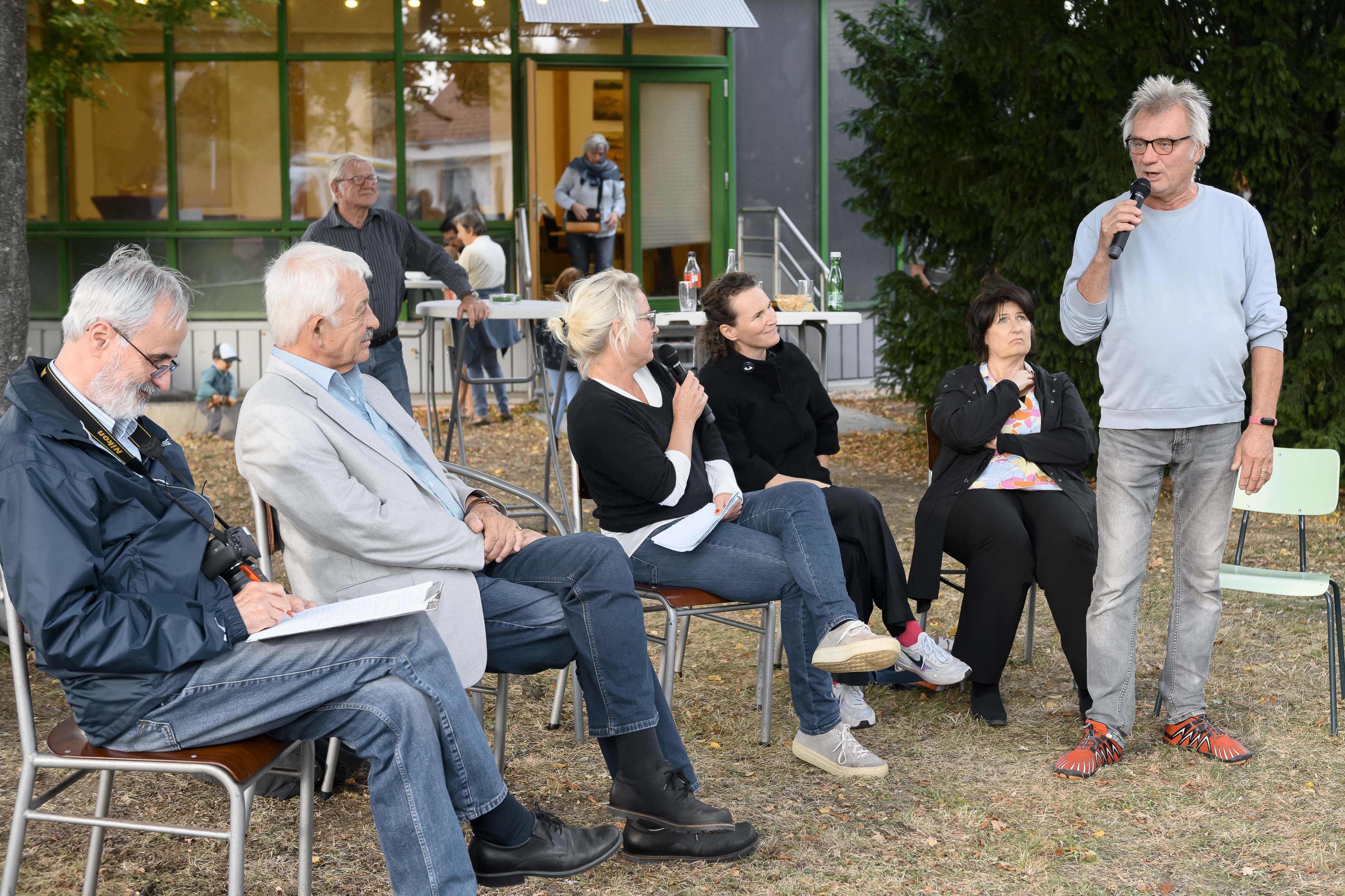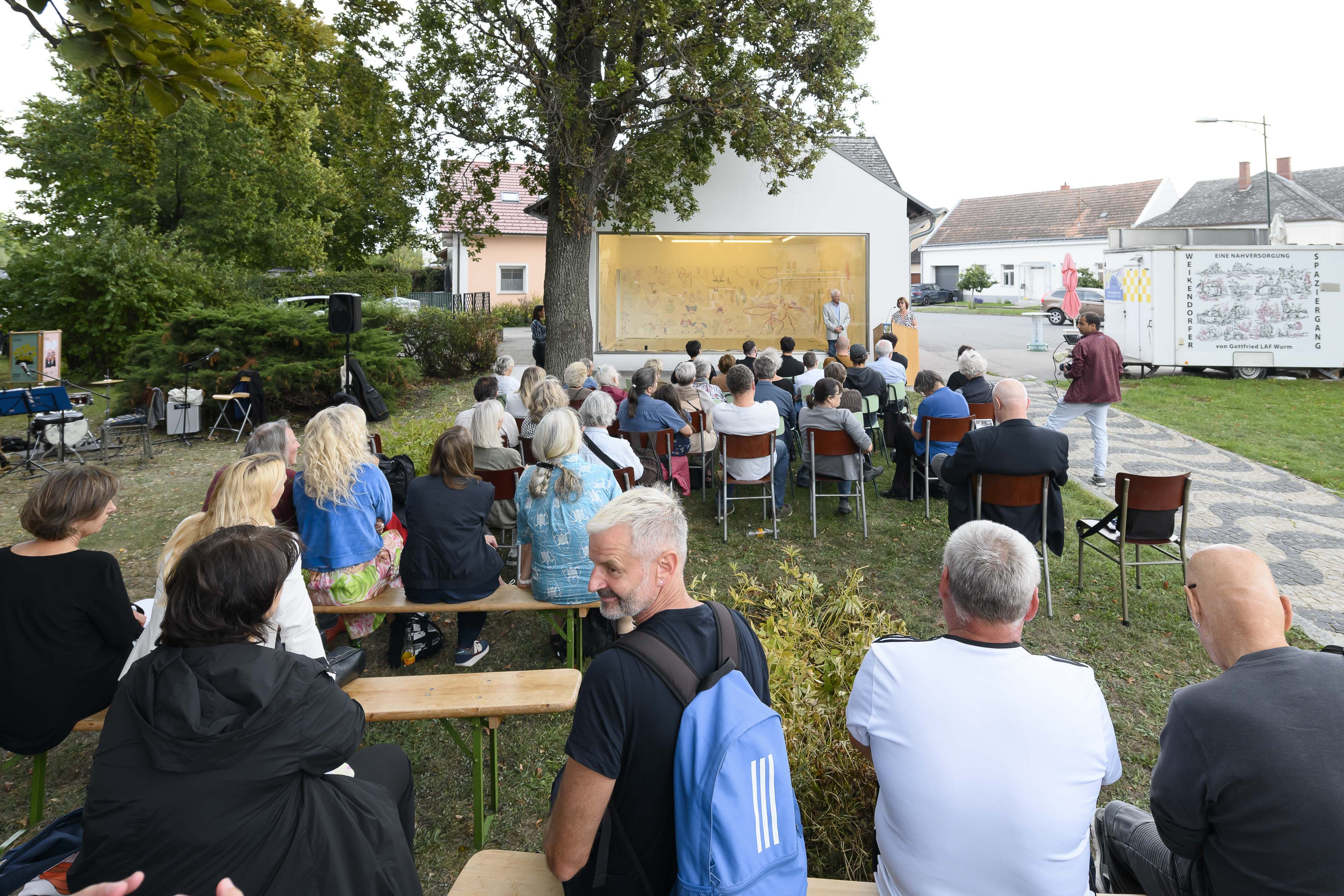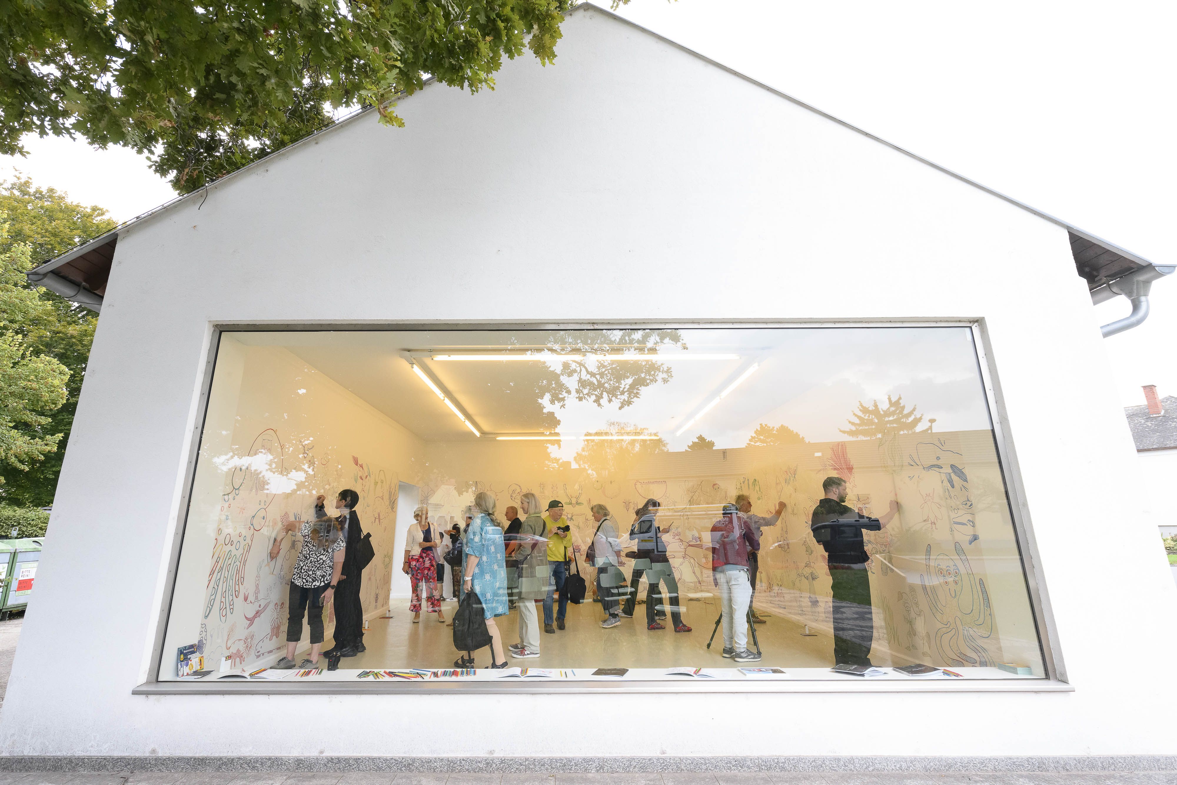 Die Eröffnung der Herbstausstellung im Kunstraum Weikendorf mit dem Projekt "Malbuch" von Robert Gabris und Theodor Moise wurde auch dafür genutzt die bereits zehnjährige ehrenamtliche Tätigkeit der Jury Weikendorf zu feiern. Bei einem Gespräch in großer Runde wurden dann die Potentiale und Herausforderungen eines Raums für zeitgenössischer Kunst in einem kleinen Ort wie Weikendorf gemeinsam reflektiert. Es war ein äußerst vielseitiger und schöner Tag!