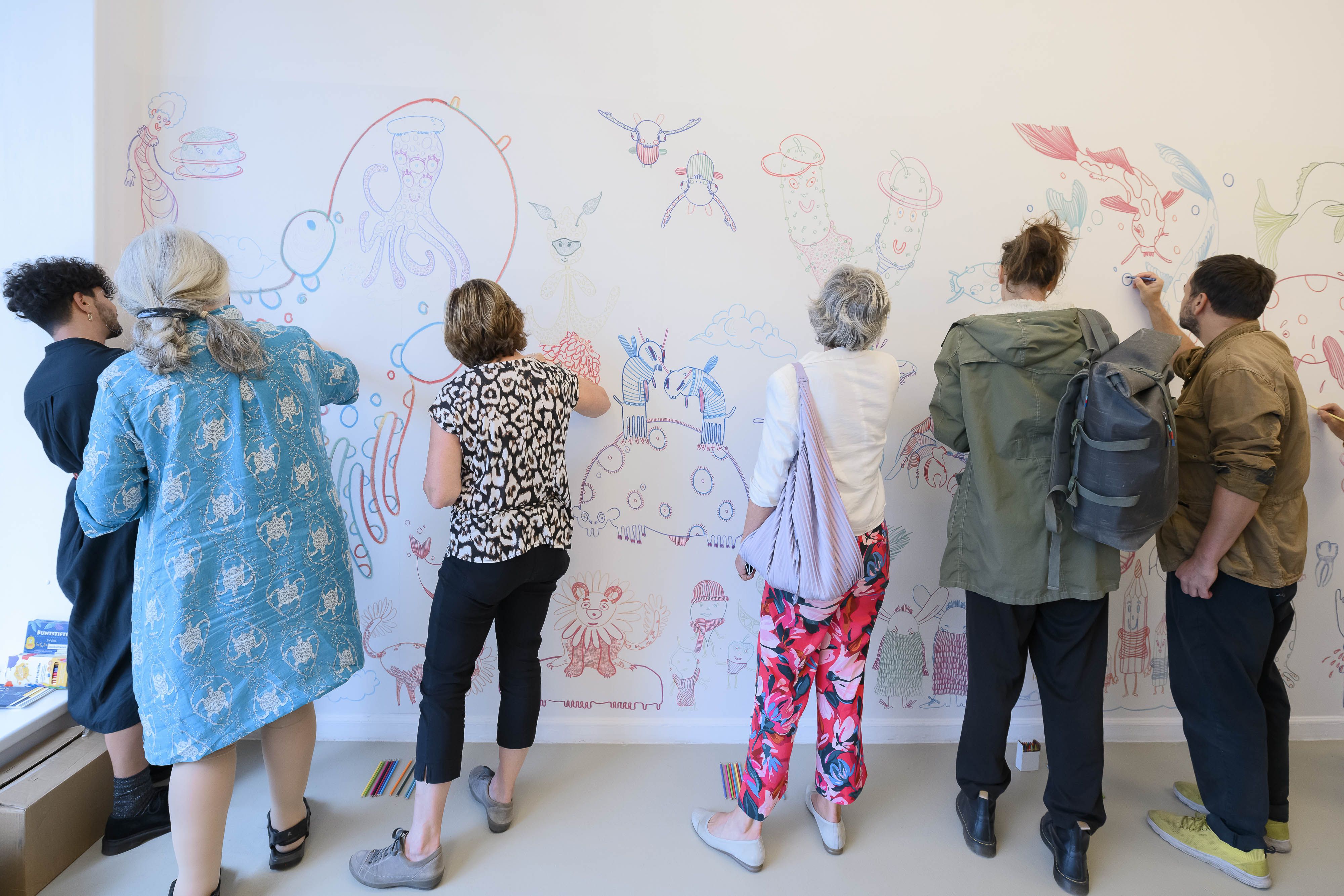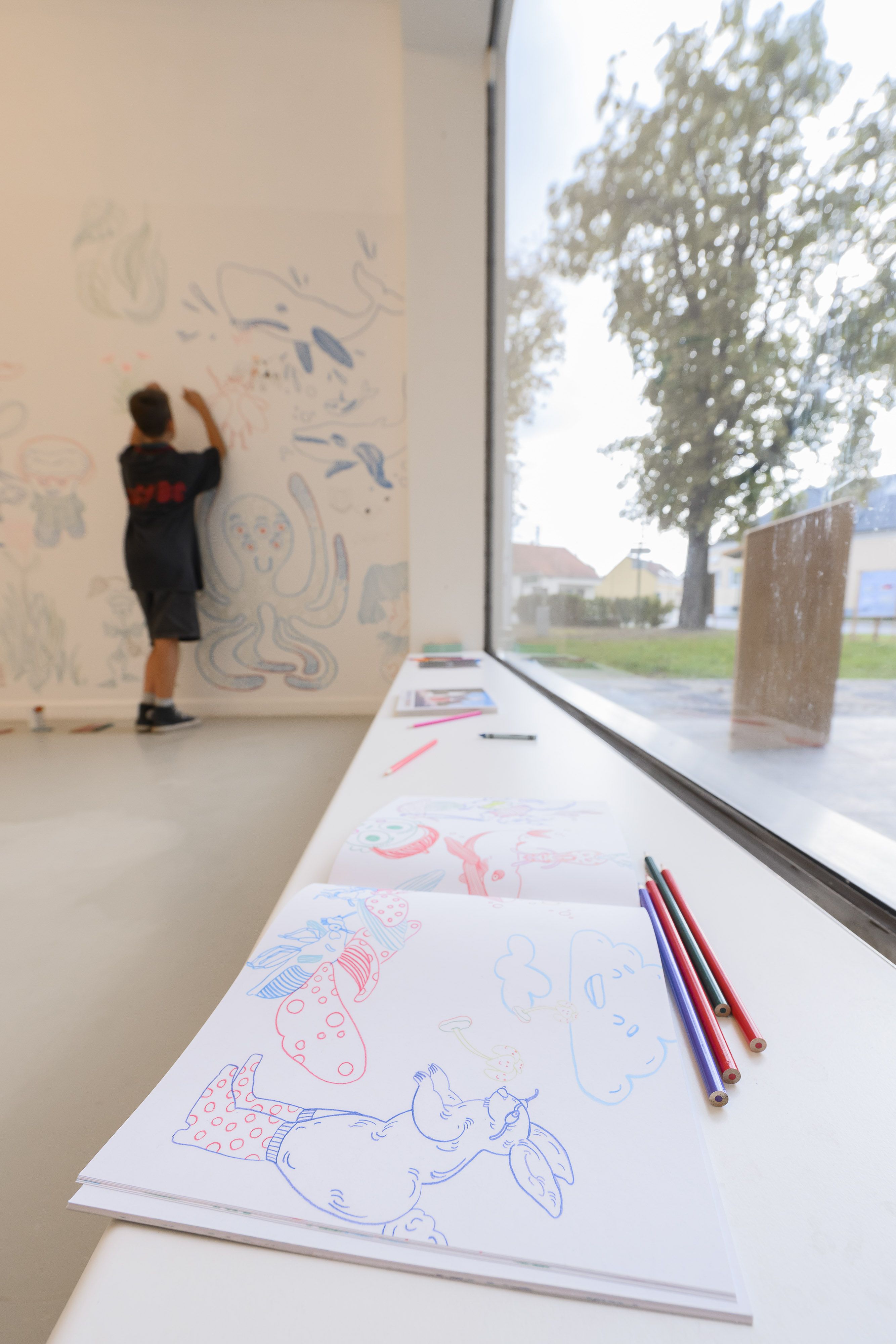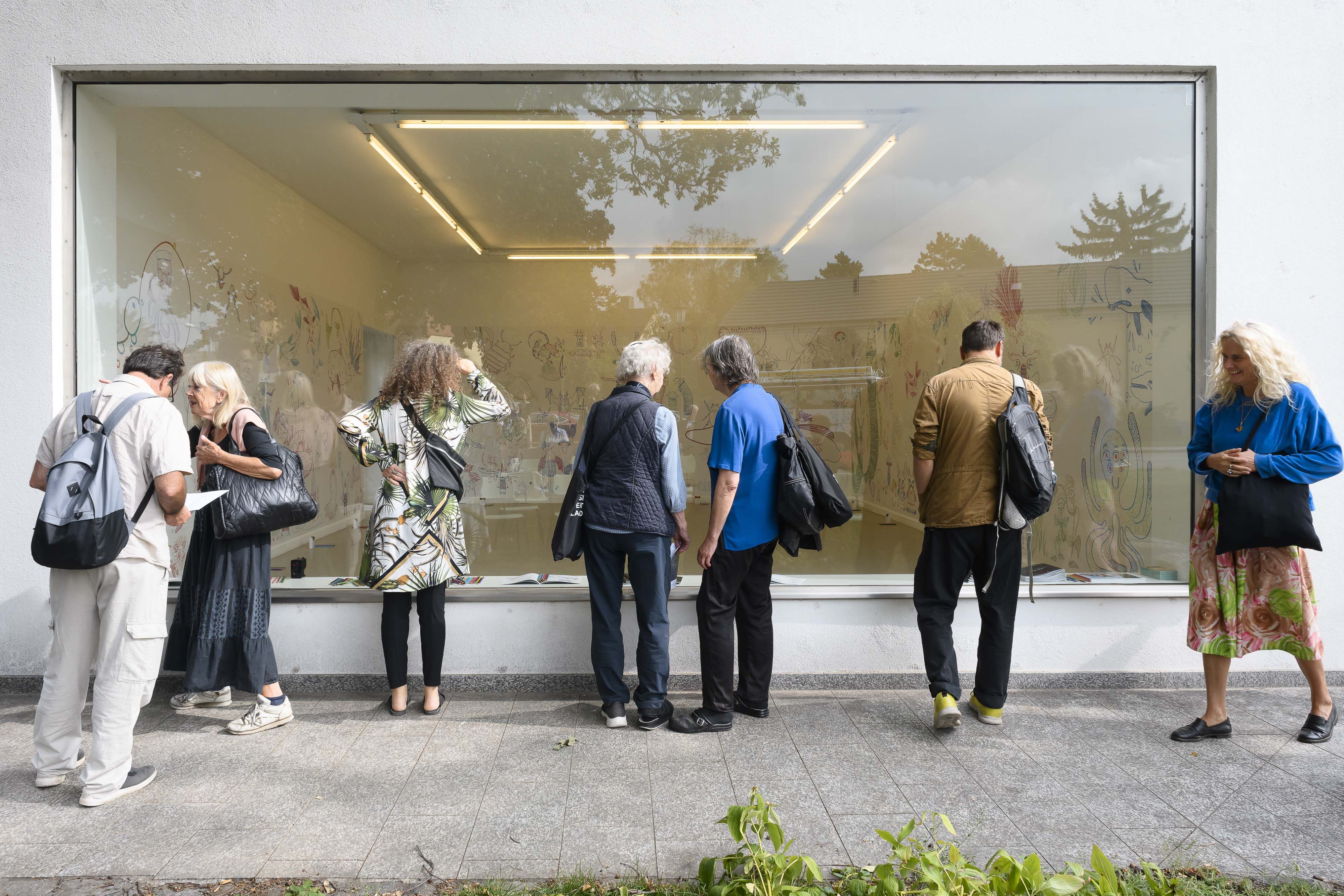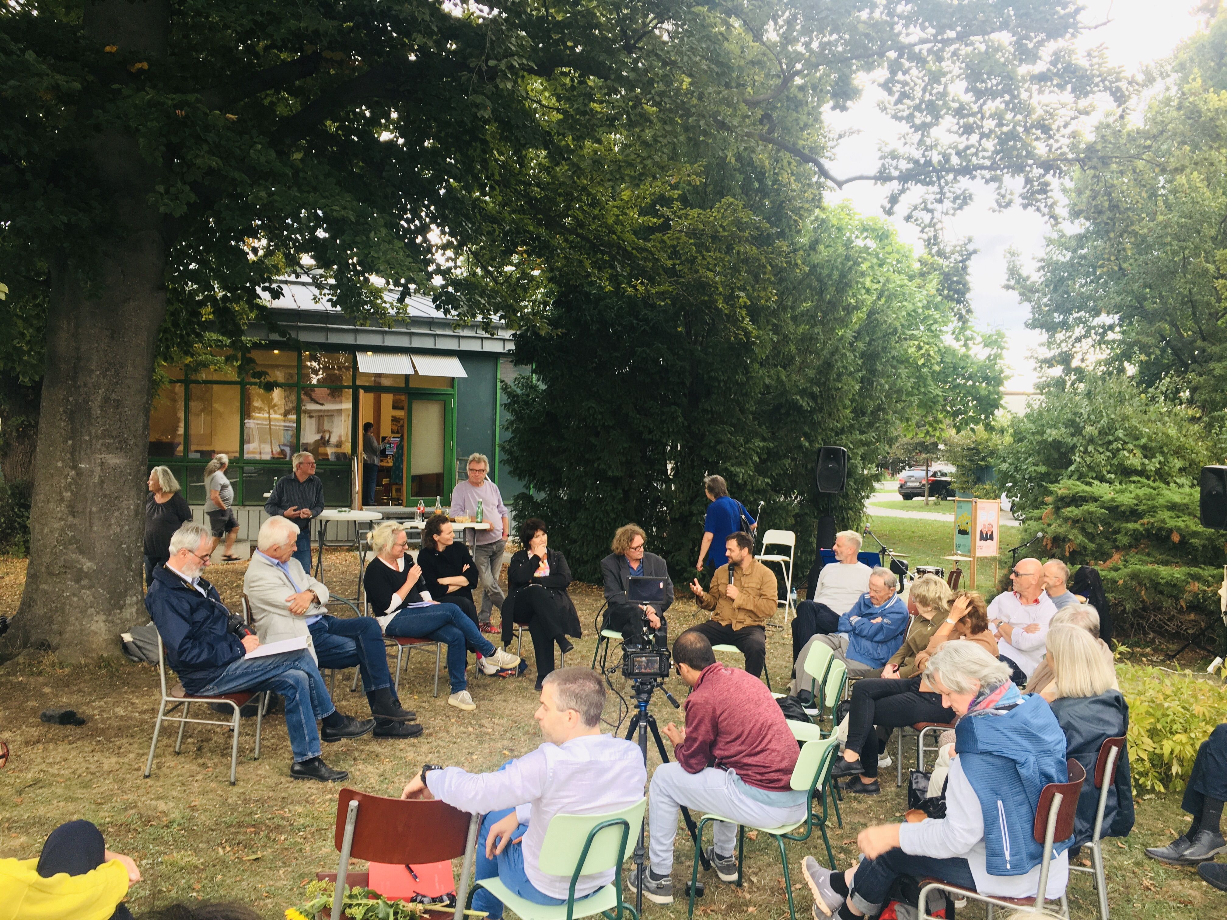 Die Eröffnung der Herbstausstellung im Kunstraum Weikendorf mit dem Projekt "Malbuch" von Robert Gabris und Theodor Moise wurde auch dafür genutzt die bereits zehnjährige ehrenamtliche Tätigkeit der Jury Weikendorf zu feiern. Bei einem Gespräch in großer Runde wurden dann die Potentiale und Herausforderungen eines Raums für zeitgenössischer Kunst in einem kleinen Ort wie Weikendorf gemeinsam reflektiert. Es war ein äußerst vielseitiger und schöner Tag!