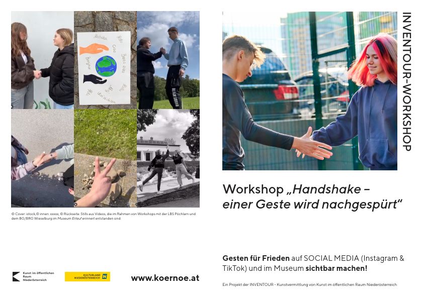 Das Projekt Handshake – einer Geste wird nachgespürt von Lisa Rastl und Willi Dorner nähert sich mit künstlerischen Mitteln den historischen Ereignissen an. Die entstanden Fotografien und Videos der performativen Aktionen werden als Neuzugang im Museum präsentiert. Im Anschluss geht eine Gesprächsrunde den Möglichkeiten, Herausforderungen und Grenzen von Reenactments nach.