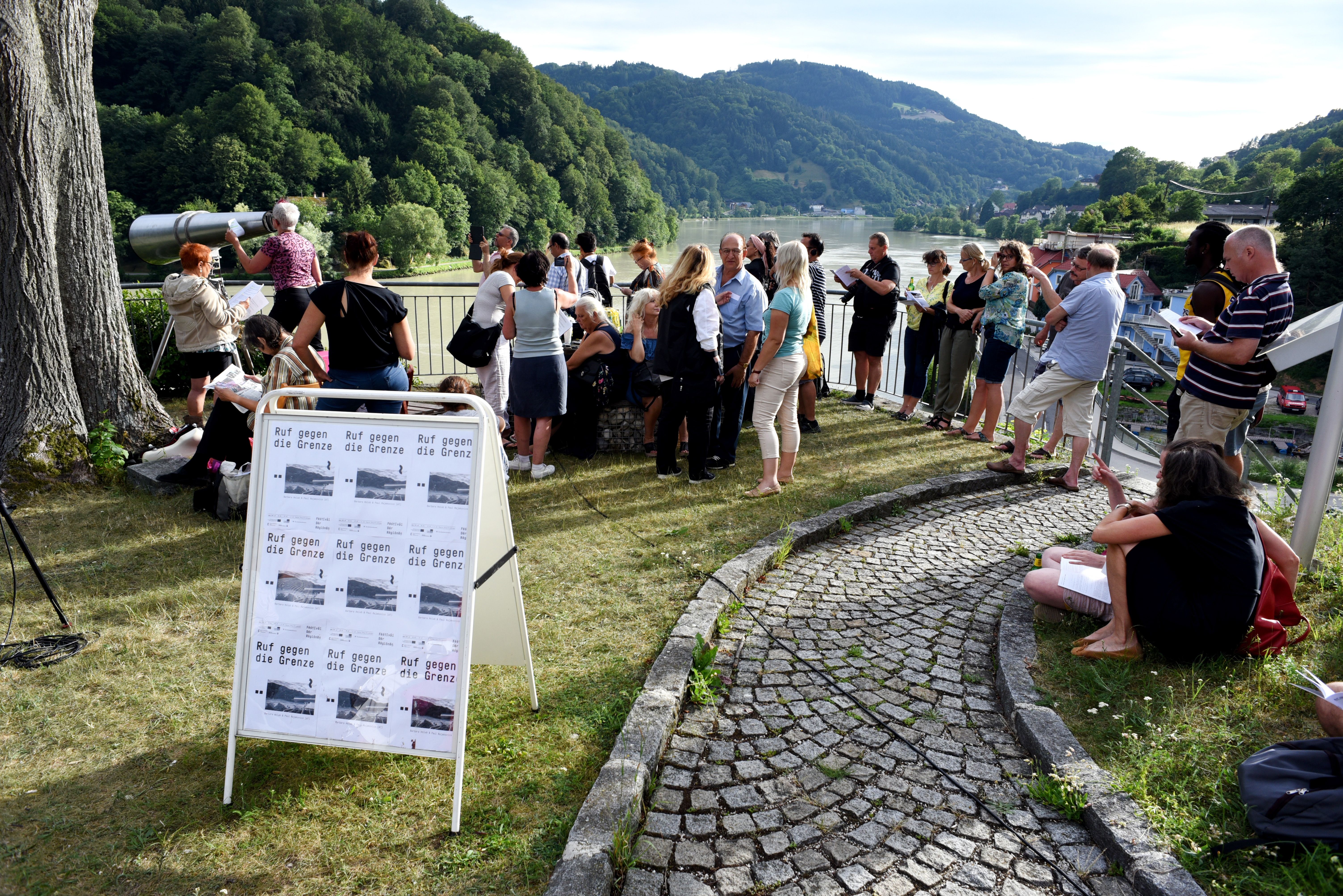 The border between two regions, Upper Austria and Lower Austria, which is a fluid border in the Strudengau (Upper Austria) defined in the middle of the River Danube, serves as point of departure for discussing the manifold notions of borders in our thinking and acting, for possibly overcoming geographical, imaginary, symbolic and mental borders in the contested current state of our society in Europe and beyond. Even though this border is harmless in comparison to international borders and the growing "walled Europe" local residents are affected by it in their daily life due to different laws in Upper Austria and Lower Austria. Therefore this geographically local border point5s at larger issues.