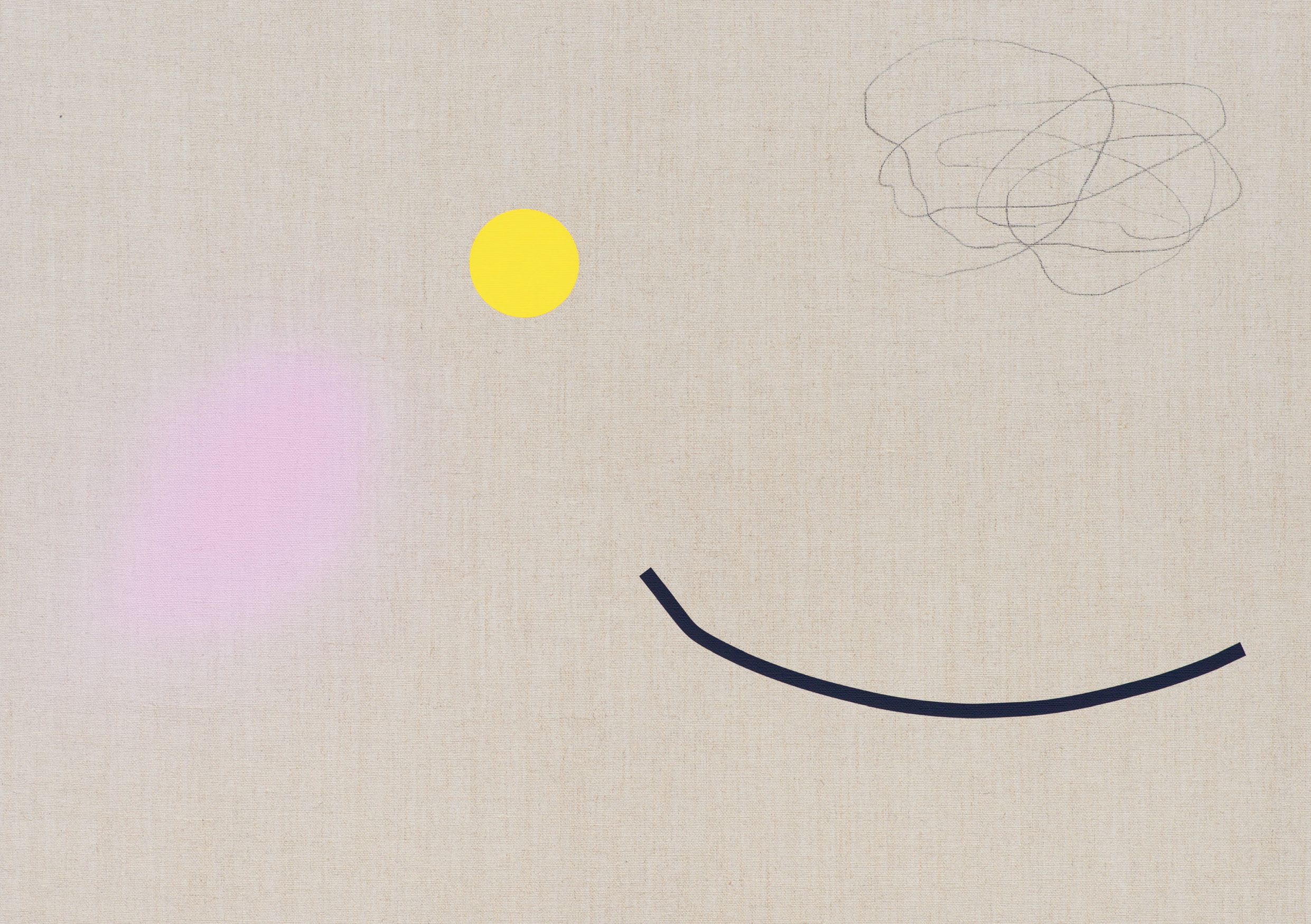 Two artists, Daniel Hafner and Manfred Grübl, sought direct contact with people with the goal of drawing them out of their isolation, albeit with very different strategies. Hafner printed one of his canvas pictures called Untitled on his card and included a written invitation to teachers to bring their students to see this work in the original at the State Library in St. Pölten, to whom he had loaned it until the end of the year. In this way, he touched on an important point by making a statement for real experiences in real places and for the perceptual, material exploration of art as opposed to the digital forms of communication and information that had become dominant already before the pandemic. The delicate color tones and signs in Hafner’s Untitled form a rhythmic composition that gives the impression that it is in the process of transforming into audible sound.