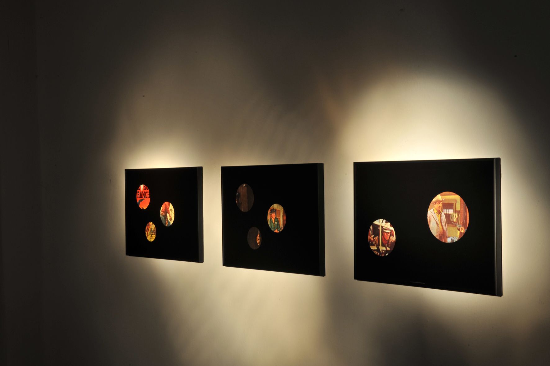 Also part of the work are black silkscreen prints on glass that are hanging on the wall. These offer a kind of peepshow of motifs from Western dime novels. Through this pictures, Leimer zooms in on classic male stereotypes, like the sheriff and the cowboy, as well as female figures who’ve earned the men’s respect, who resisted the social norms of the time, and who became legends as a result of their lifestyle and attitude, like Bertha von Suttner.
