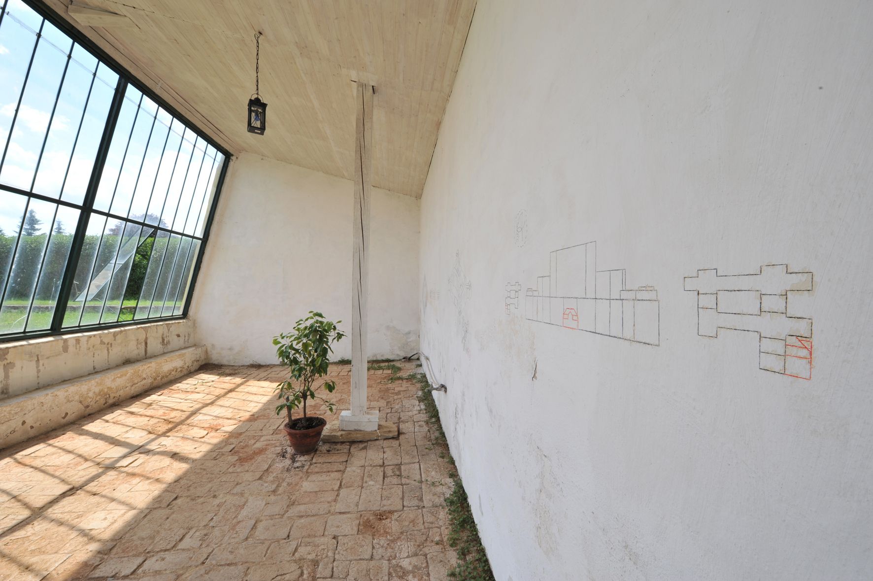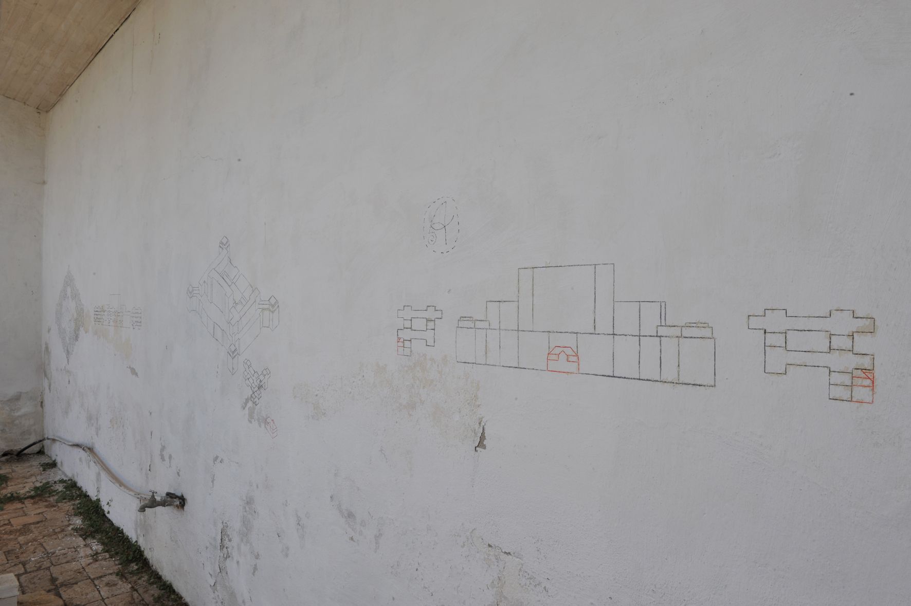 For this work, Dabernig developed sequences of axonometric projections, ground plans, elevations, and cross sections of these three buildings, presenting them as wall drawings in the orangery of Harmannsdorf Castle. The work is thus characterized by different political connotations of space and the presence of the structural. Its narrative frame also refers to Bertha von Suttner’s life, which was located somewhere between a latent political threat, the intimacy of marriage, and the power of modern, independent thinking.