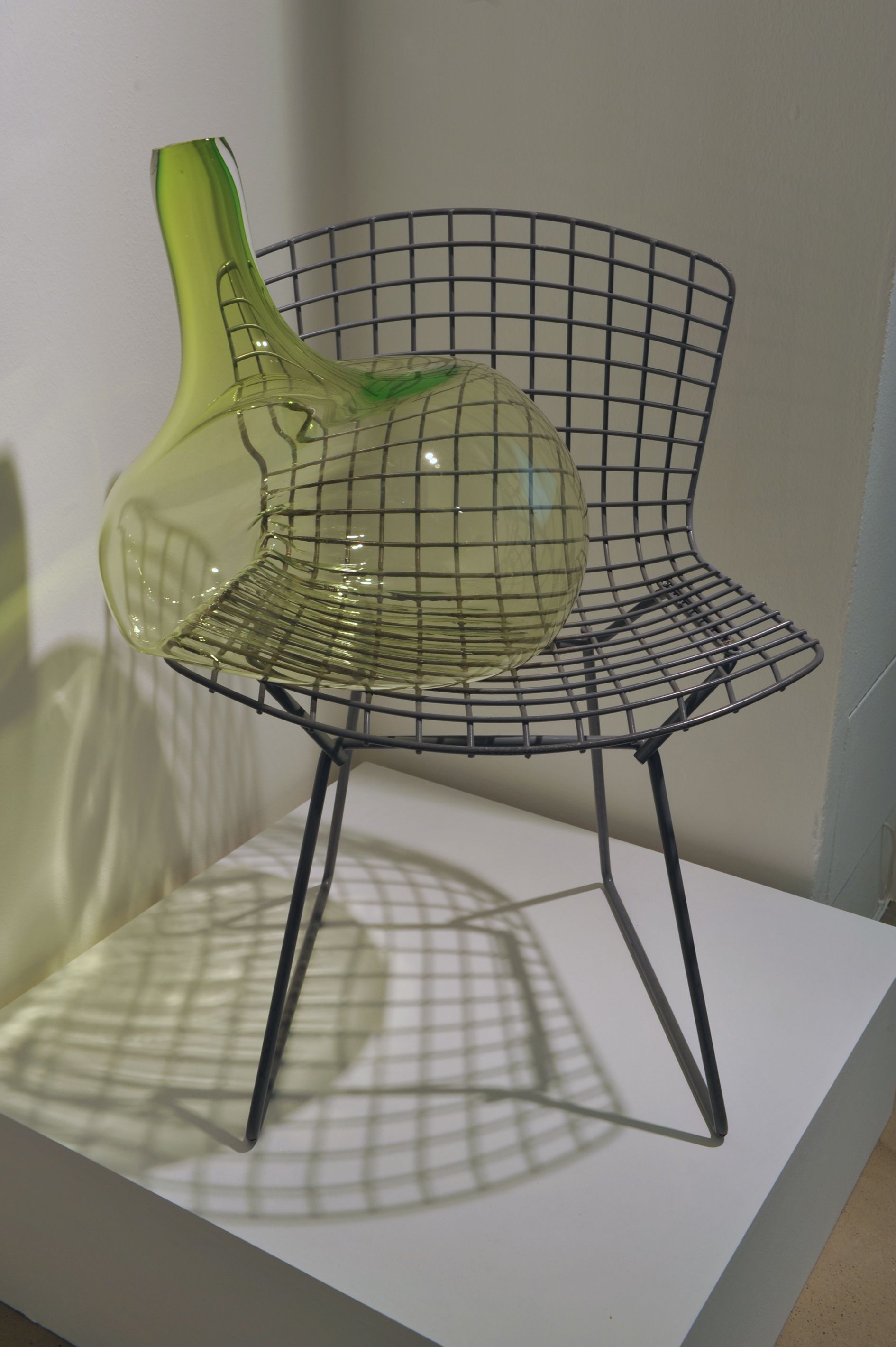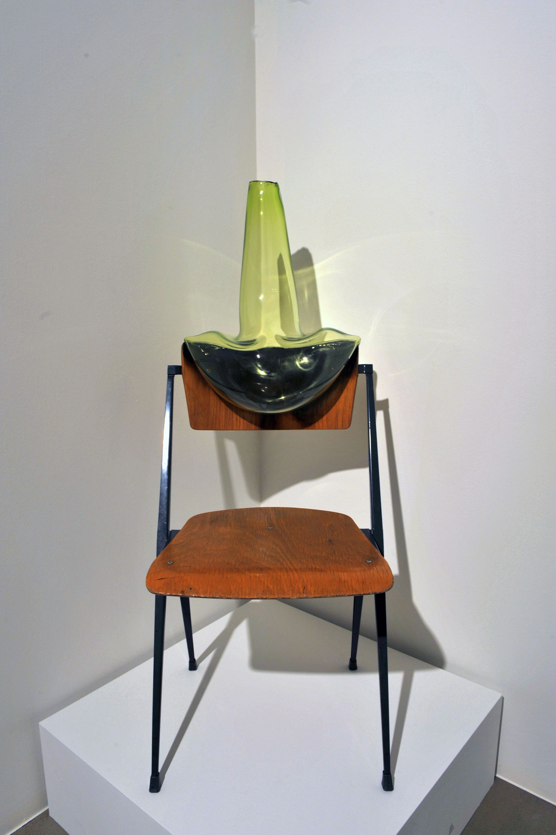 In der Arbeit "Crystal Virus" zeigt die niederländische Designerin Pieke Bergmans Möbelobjekte, die von einer glühend brennenden, flüssigen Glasblase erfasst und entfunktionalisiert wurden. Es geht bei diesem Projekt um ein "Treffen" zwischen den traditionellen Blastechniken der alten königlichen Glasmanufaktur in Leerdam und seiner zweckentfremdenden Verwendung als parasitär-invasives Material in Bergmans Arbeiten. Bei diesem Treffen direkt am Ort der Herstellung lud sie interessierte Menschen ein, ein persönliches Möbelstück mitzubringen und durch einen sich darauf einbrennenden Glastropfen “infizieren” zu lassen. Ein symbolisches Brandzeichen, das die sinnliche Faszination von Glas und seiner kunsthandwerklichen Fertigung zeigt und uns wegführt von der Virtualität der Bildschirme und globaler Vernetzung. Wir erkennen hier ein neu erwachtes Interesse an der physisch-sinnlichen Qualität analoger Materialien und Objekten. Ihr Virus Projekt fand große Aufmerksamkeit und Bergmans "infizierte" in der Folge eine ganze Kollektion von Möbelobjekten aus Perlmutt und auch einige moderne Designklassiker der Firma Vitra.