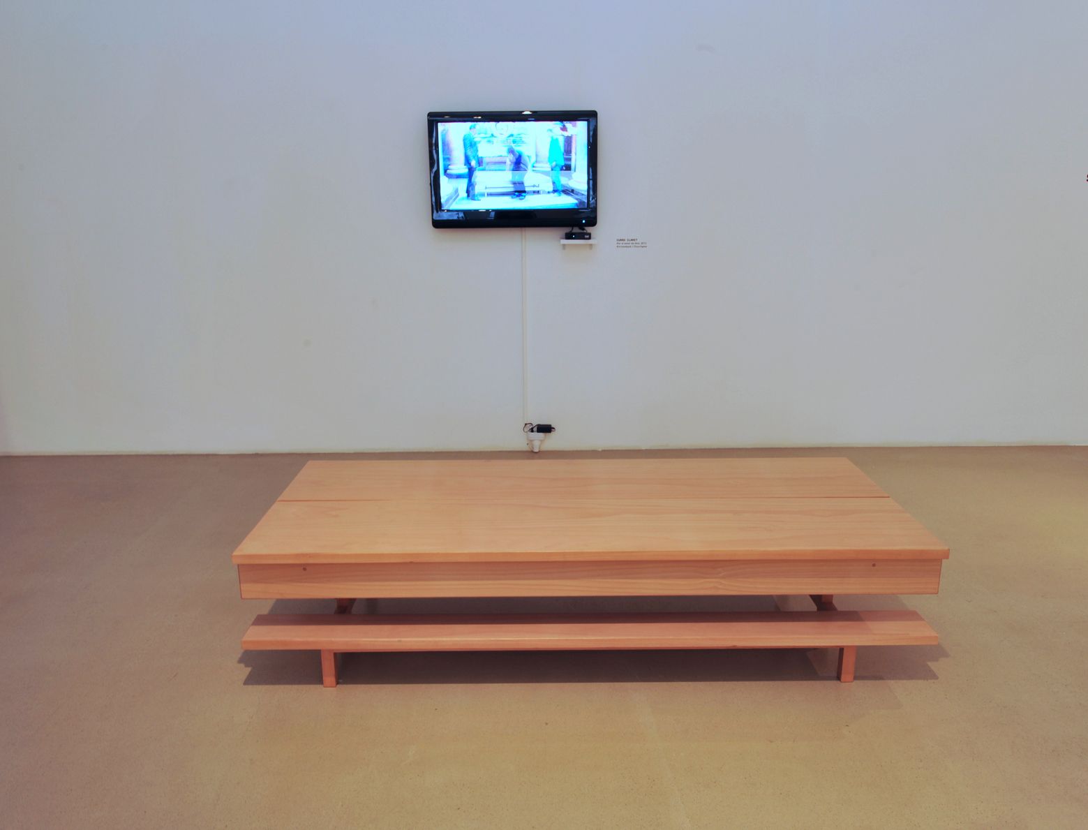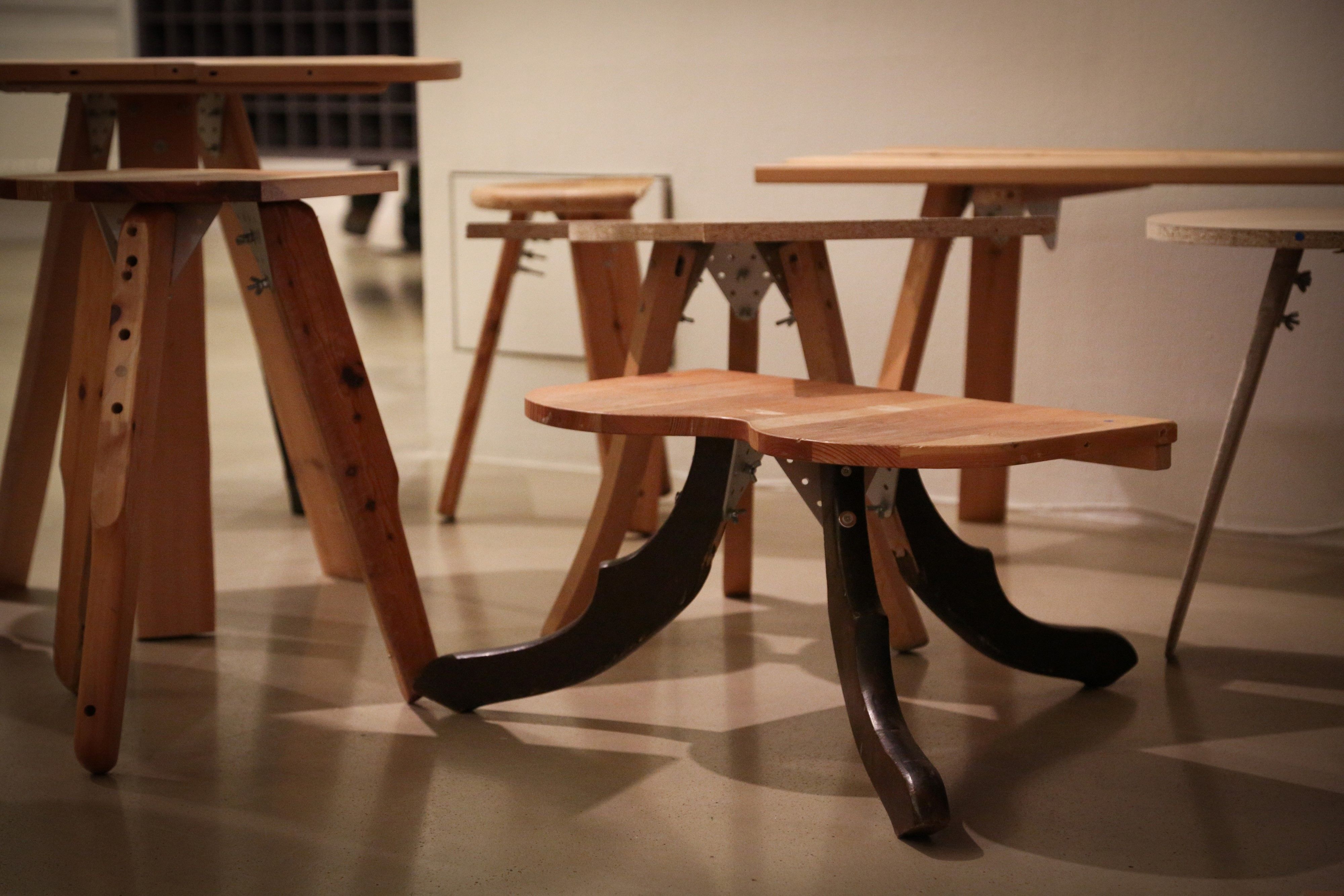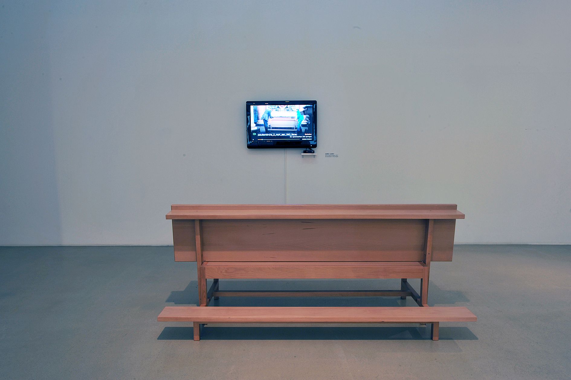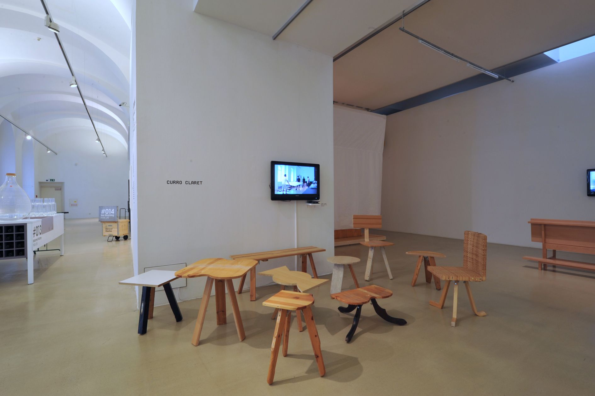 Die Arbeiten von Curro Claret beschäftigen sich mit Produktionsformen, die in Zusammenarbeit mit sozialen Hilfsprojekten entstehen. In seinem Projekt Taburete 300 gibt Claret Menschen in Not die Möglichkeit mit einem einzigen zentralen Metallteil und aus wiederverwendeten Füßen und Platten ausrangierter Möbel eine Vielzahl von Hockern, Tischen, Leuchten einfach und kostenfrei zu produzieren. Das parasitäre Phänomen, das in diesem Projekt auftritt ist die Verbindung einerseits der Ästhetik eines “Designobjekts” als systematische Montage ausgewählter, alter Möbelteile, wie oftmals im Avantgardedesign der 1990er bereits praktiziert wurde, und andererseits der reale menschliche Hintergrund einer sozialen Institution, die den Betroffenen durch die Produktion und den Verkauf dieser Objekte in der Kunstgalerie ein kleines finanzielles Einkommen bieten können. Clarets zweites Projekt in der Ausstellung, nimmt Bezug auf die, aus dem Mittelalter stammende Tradition der katholischen Kirche Vertriebene, Pilger und Heimatlose vorübergehend im Kirchengebäude aufzunehmen und übernachten zu lassen. Dafür entwickelte Curro Claret eine zu einem Liegebett umfunktionierbare Kirchenbank. Auf den ersten Blick wirkt die Idee ironisch, aber gleichzeitig ist sie doch ganz direkt und ehrlich gemeint.