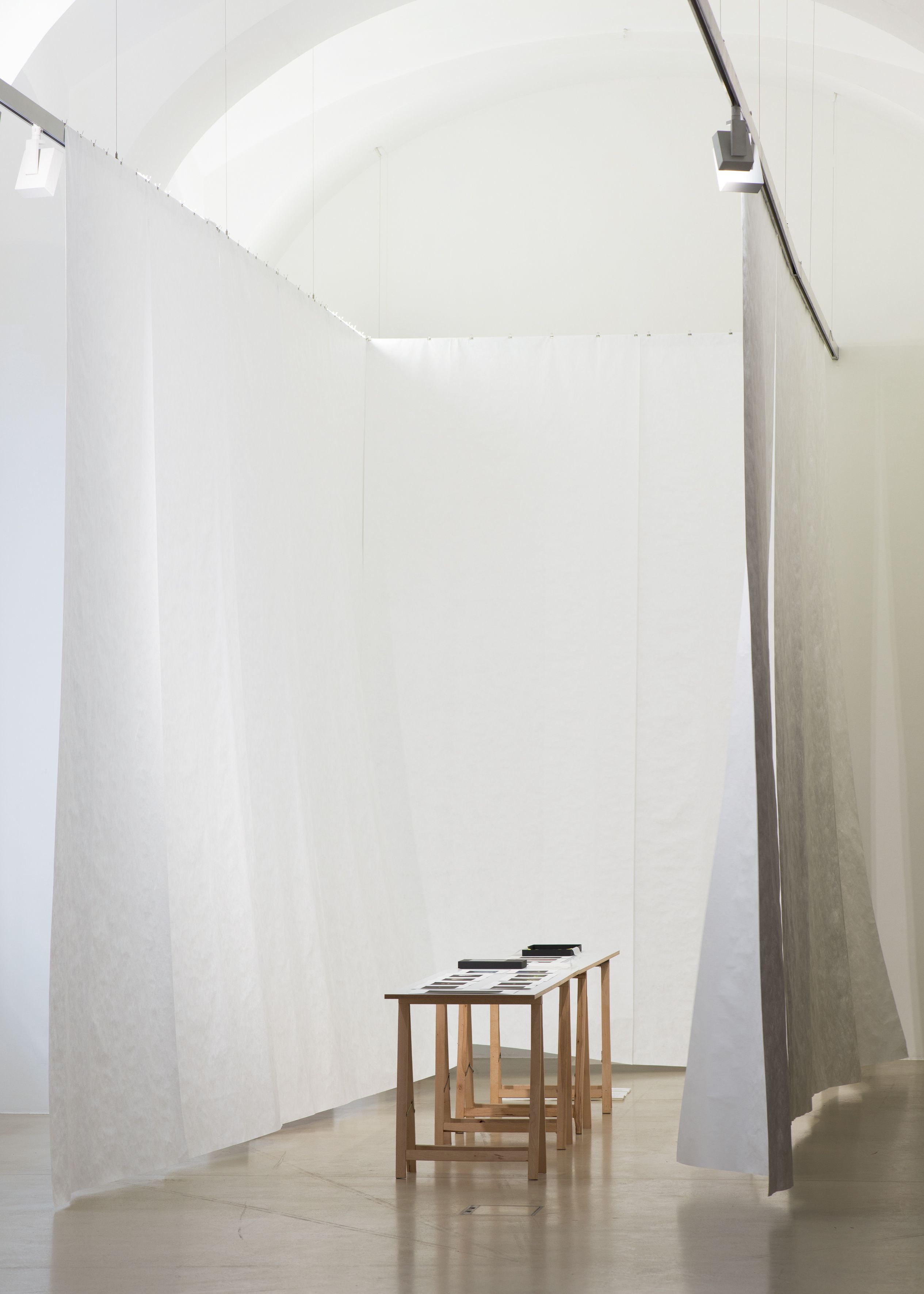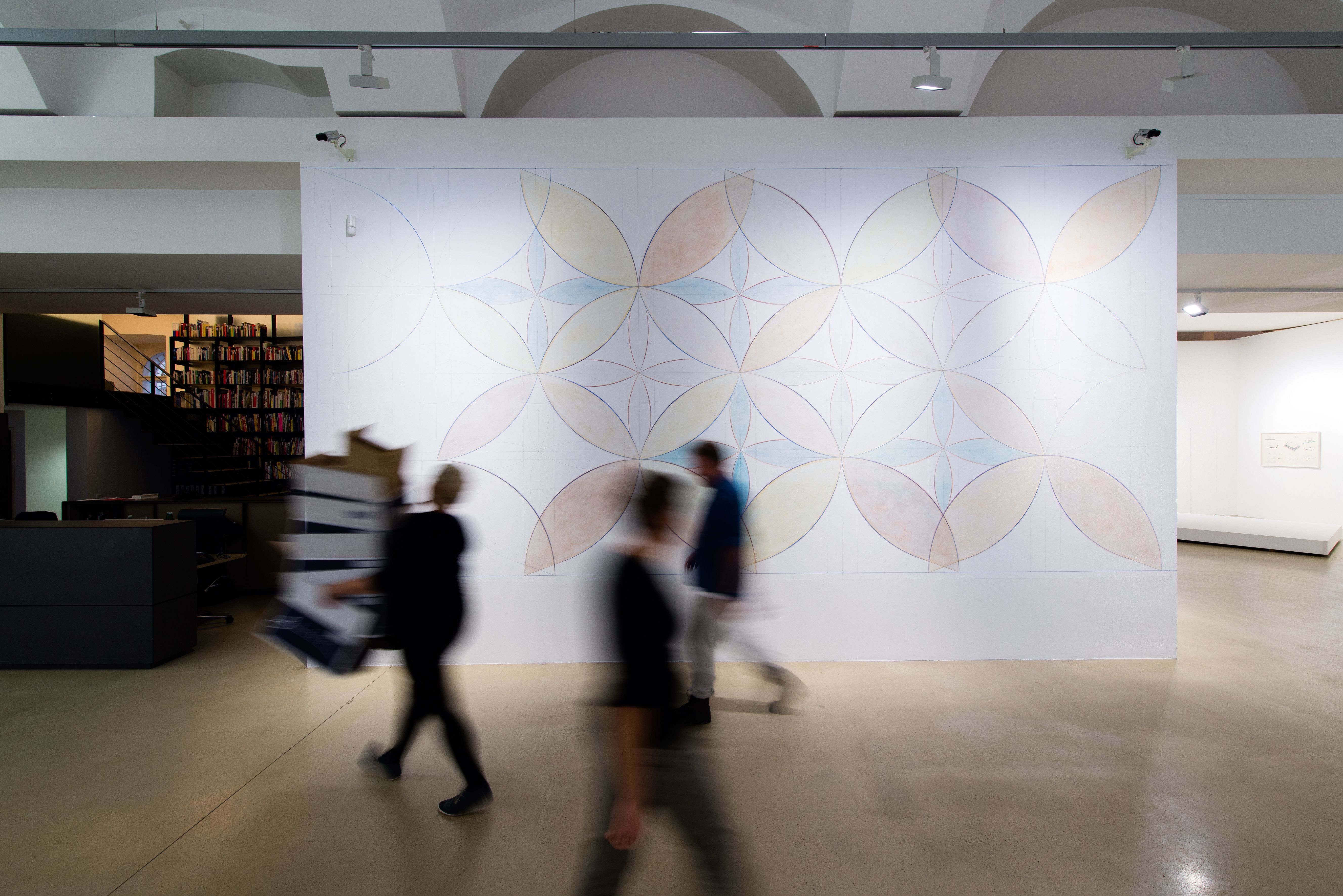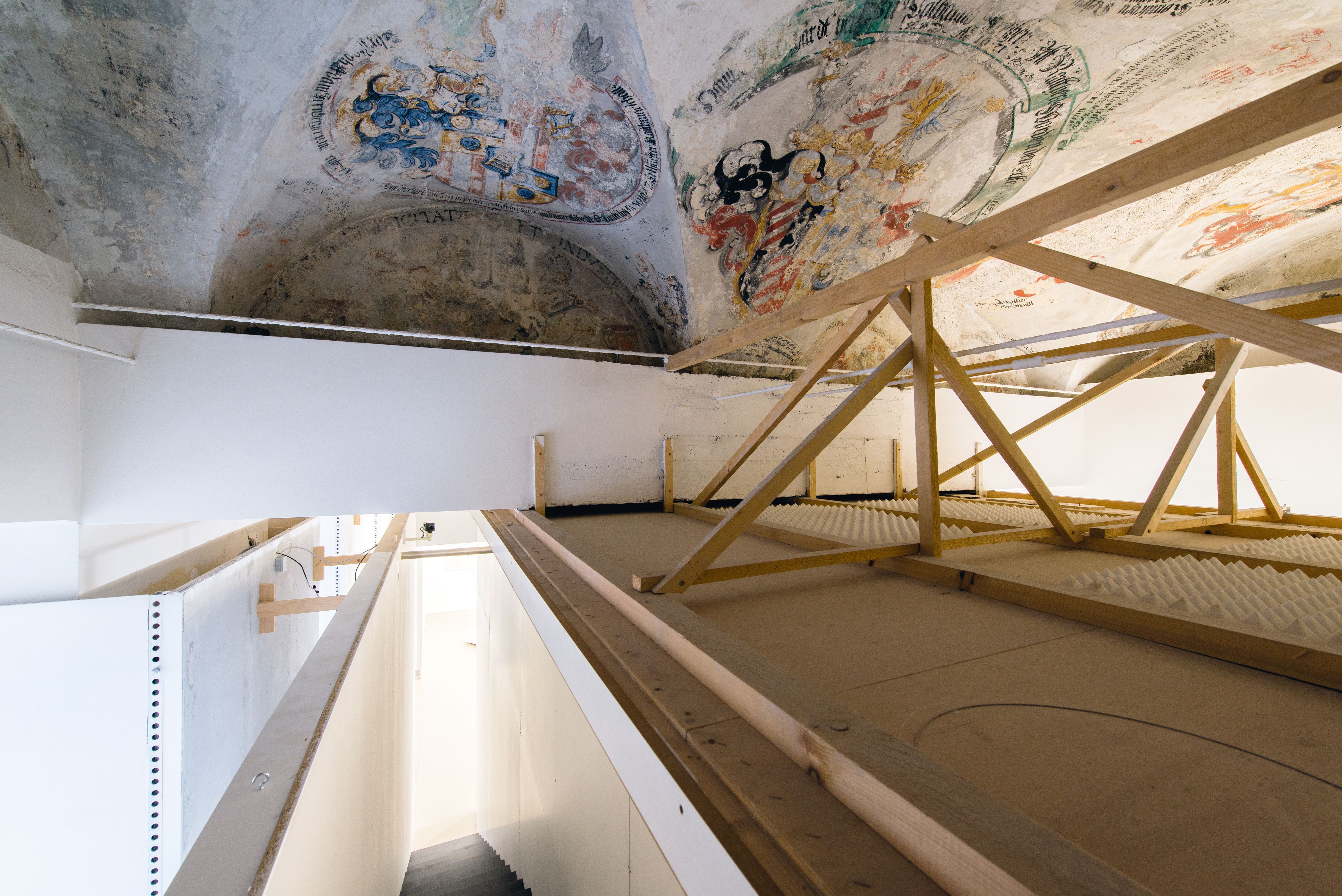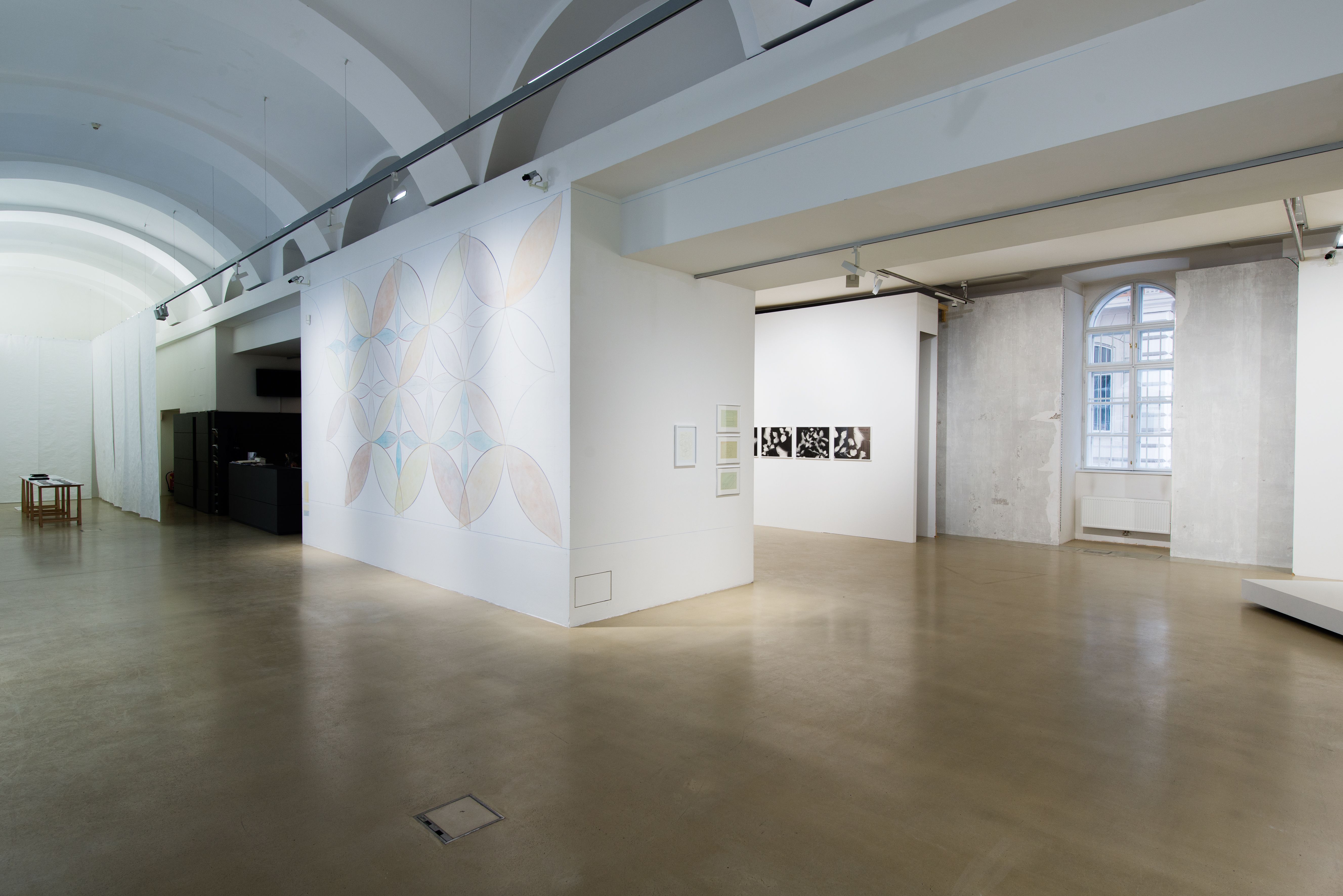 Thomas Gronegger schafft für die Ausstellung ein Wandgemälde, das sich auf die historischen Schlingrippengewölbe der ehemaligen Torhalle, jetzt Landhauskappelle, und den vierstrahligem Schlingenstern im heute verlorenen Kurvaturengewölbe bezieht. Eine Zeichnung im Kupferstichkabinett der Akademie bildet die Basis für die Wandgestaltung im Kunstraum. Theoretische Projekte, zeichnerische Analysen, Fotodokumentationen und konkrete Objekt- und Wandarbeiten oszillieren zwischen morphologischer Forschung und künstlerischer Suche nach neuen Ausdrucksformen im Räumlich-plastischen. Dabei analysiert Gronegger sein gewähltes Thema immer zuerst zeichnerisch, um grundlegende Strukturen und Elemente freizulegen und fotografiert sie dann um räumlichen Sequenzen und inhaltliche Querverbindungen zu dokumentieren.