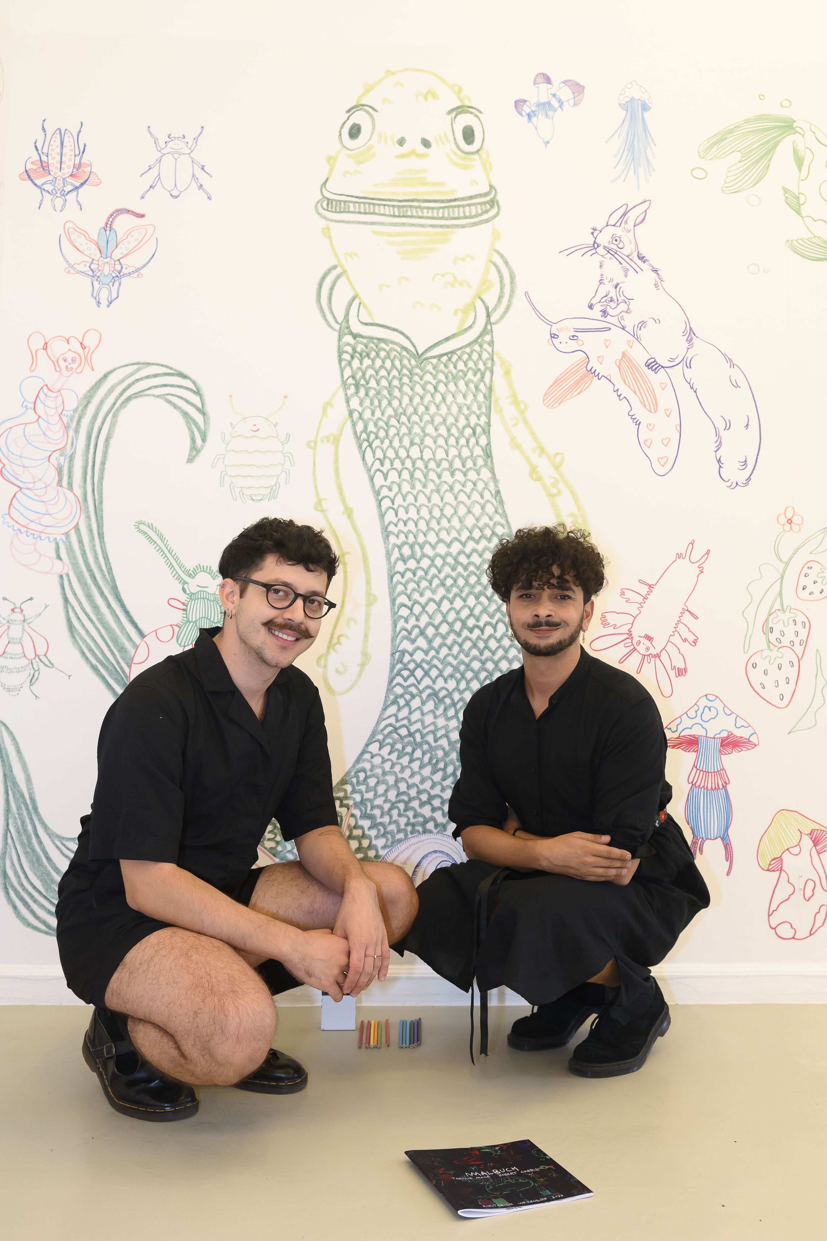 »Unsere Malbuchkreation zeigt eine faszinierende Welt, bevölkert von vielfältigen, bunten Wesen und Kreaturen. Eine grenzenlose Sphäre ohne Hierarchien, Normen, Geschlechter, Grenzen oder Hautfarben. Diese Welt ist erdacht, jedoch keineswegs unreal, da sie in unserem Inneren existiert. Sie zieht ihre Nahrung nicht aus Besitz, erzeugt keinerlei Hass und besteht ausschließlich im gegenwärtigen Augenblick. Im Laufe der Zeit haben viele Bewohner_innen dieser Welt erkannt, dass kollektive Kooperationen der Schlüssel zu offenen und inklusiven Räumen voller Freude und Schönheit ist. Die Kreaturen im Kunstraum übermitteln uns eine kreative Bildsprache, die verdeutlicht, wie einfach es ist, Normen und patriarchale Strukturen in uns zu hinterfragen oder sogar hinter uns zu lassen. (…) Unsere Absicht ist es, diese Strukturen gemeinsam mit euch für einen Moment abzulegen. Das Malbuch dient als kreatives Werkzeug, um die Sensibilität des Denkens, Sprechens und Sehens zu entwickeln. Es ermöglicht uns, diese Fähigkeiten zu erlernen, zu verinnerlichen und anzuwenden.« Robert Gabris, Theodor Moise