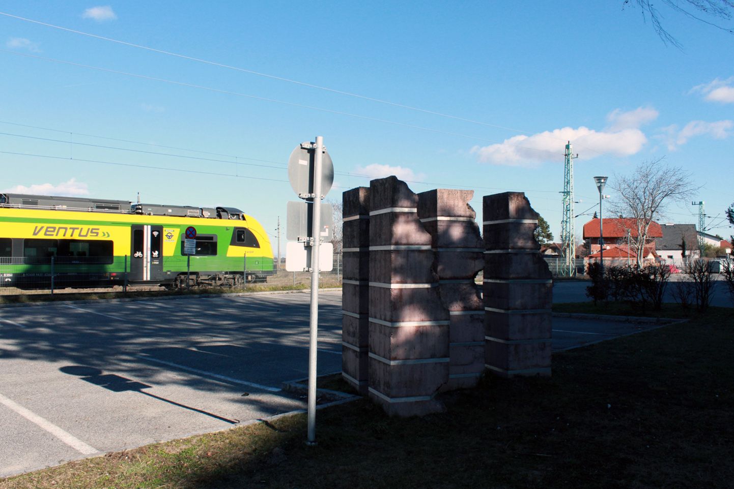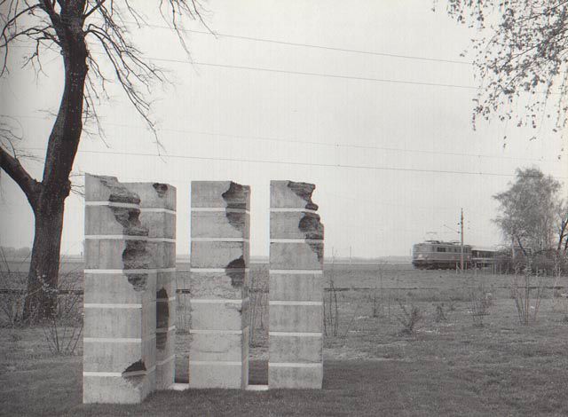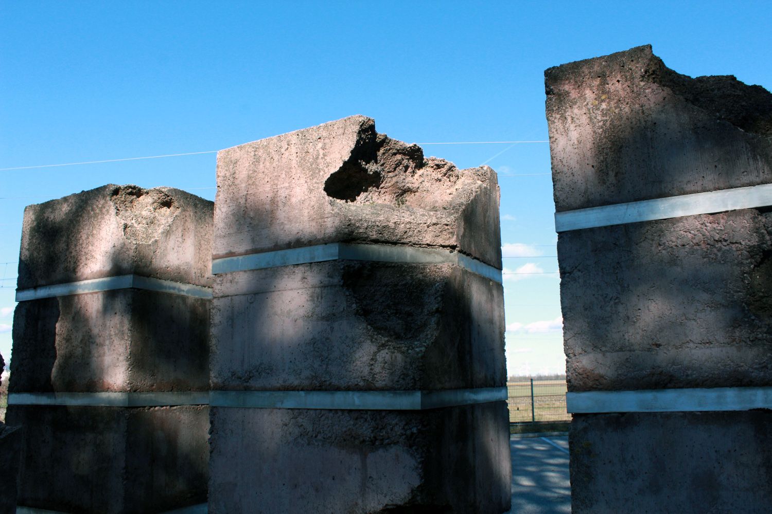 The group of sculptures consists of eight column-like objects with a height of 2.4 metres. Four of them are in Ebenfurth and four are in Wiener Neustadt. The simulated signs of destruction are symbols of the transitory nature of towns and cities, where the columns remains as fragments.