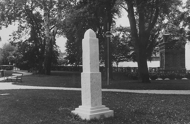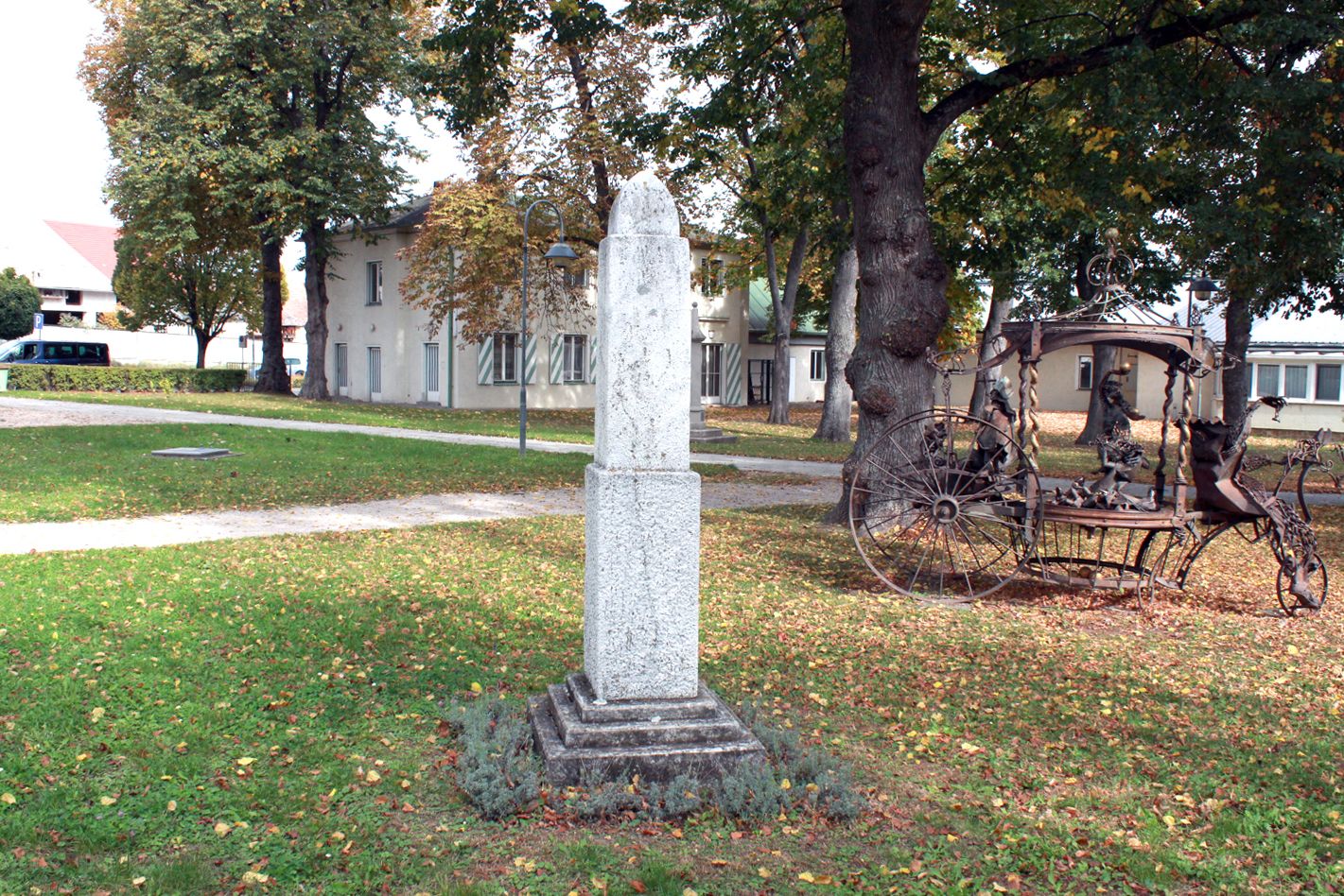 An oversize marble sculpture was set up in the Stadtpark in Mistelbach. It was a stele made of stone, which makes reference to classical forms in its archaic construction. The work was executed during a symposium in Carinthia in 1988. The marble stele is a ‘wandering stone’ and has made stopovers (at the Secession, Stadtpark baroque palace). According to the latest reports, discussions between the council and the artist about providing a suitable pedestal for this work of art have not yet been resolved to the satisfaction of all concerned.