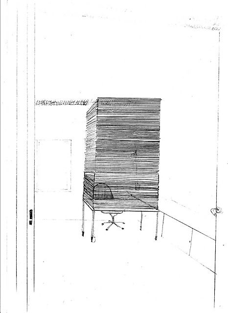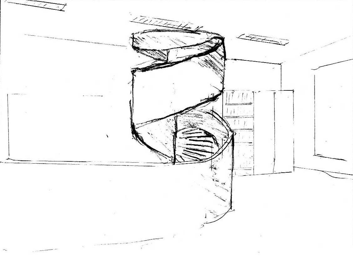 Catrin Bolt won the competition for the artistic design at the community centre with a bold idea for a project that was not realised however. An outdoor object that projected slightly above the building was to have been created from the office fittings. The process was eventually to have been reversed, and documented in a volume of photographs in the community centre.