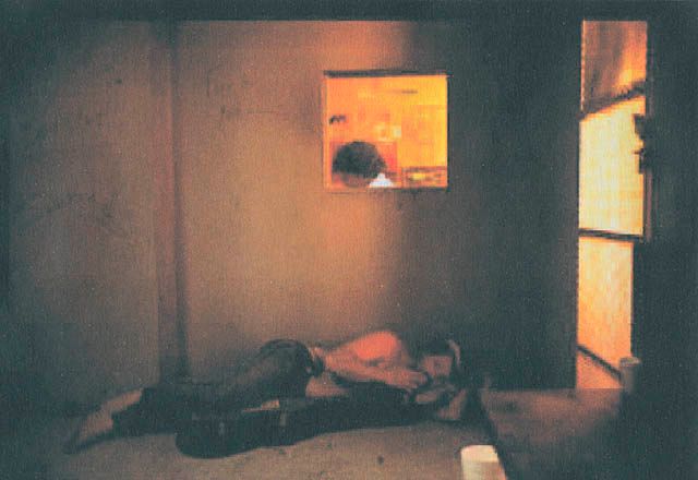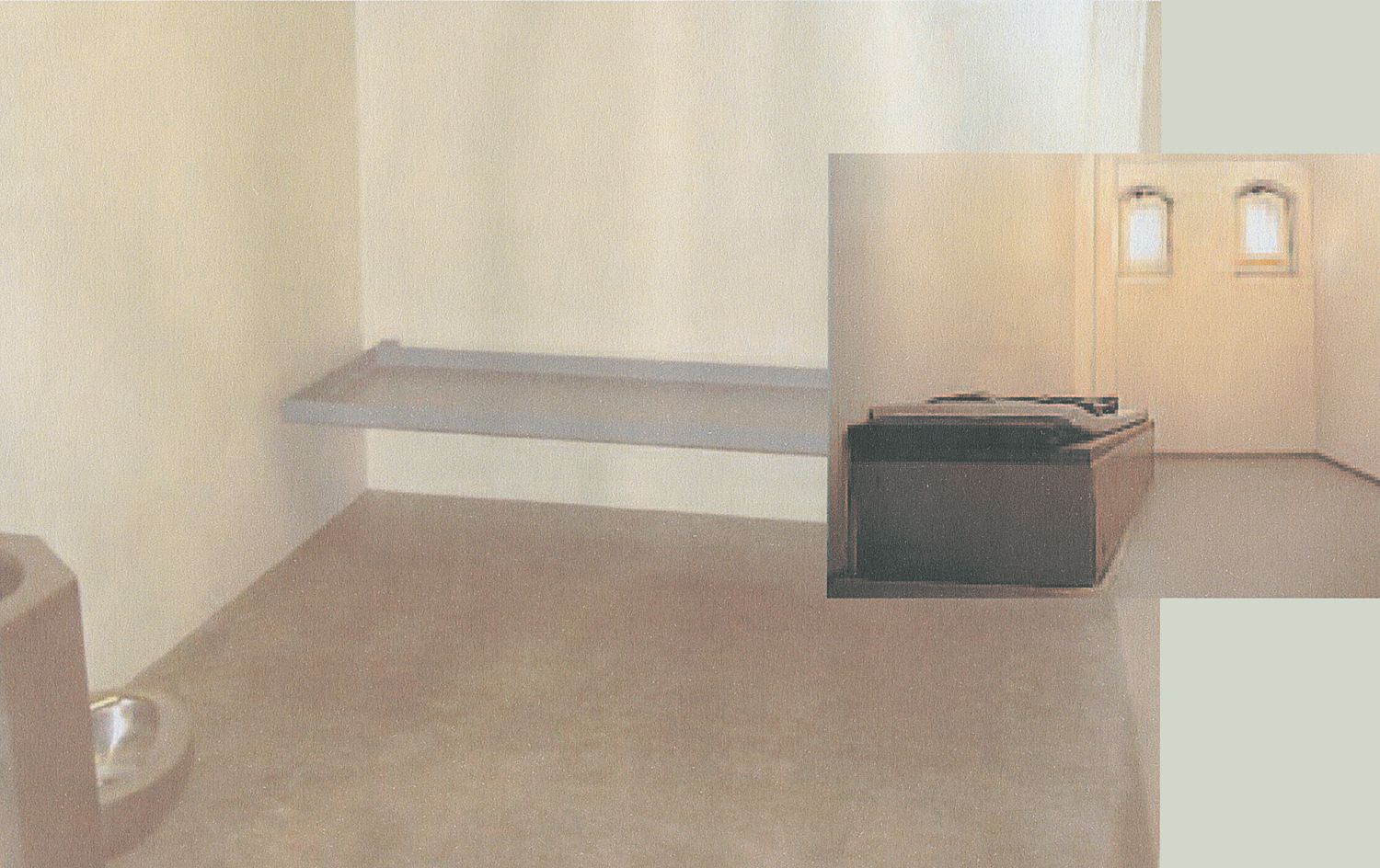 Christoph Büchel has designed a sobering-up cell for the idyllic Wachau vineyards. The concept envisages the erection of a functional cube that stands in an isolated location on the Wachtberg vine terraces belonging to the City of Krems municipal winery, to be run by the local police. Drunkards and people in need of sobering up must come here voluntarily – according to the artist's instructions. The cell has a wonderful view. Although one wonders whether a drunk in a wretched state is in a fit state to appreciate the beauty of the countryside, or whether the sight of the vines will remind them of the glasses imbibed the day before. The artist has also conceived a little horror to amuse and annoy residents of the town: the noises made by the drunks are broadcast in Krems via a megaphone. Their comments as well as the inevitable farting, puking, groaning or whining can be heard by the whole town – as can the drunkards' treatment by the local officers of the law. Büchel's concept arouses reminiscences of show trials of the middle ages, where punishment was also intended as a deterrent and as a preventative measure. Büchel has fitted out his space with exactitude, including details that are apparent indications of activity, so that the viewer becomes a voyeur and investigator in a fictive narrative space.