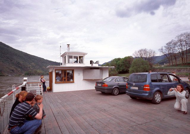 The Camera obscura for the Danube by Olafur Eliasson was installed on the Spitz-Arnsdorf reaction ferry to mark the entry of the Wachau region into the UNESCO list of World Cultural Heritage Sites in 2004. The work of the Danish artist combines scientific research and complex technological experiments with an all too lyrical attentiveness for the elements and the relationship between people and nature. Eliasson's artwork is neither sculpture nor image, it is a situation: the viewers are at the focus, the vehicle becomes a stage for seeing. The artist has built a touring cinema in the ferry's small cabin. The film on show is reality. The whole space is a camera obscura, a darkroom, where one spends time to experience a phenomenon that was even familiar to Aristotle: Light falling through a small aperture in a darkened space creates a back to front upside-down image on the opposite surface. Eliasson has upgraded the elementary principle of a hole with a system of lenses and mirrors. The world outside pours inside onto two monitors. Like a film, the movement of the ferry on the river generates a moving image of the riverscape around it. Crossing the Danube becomes an intense experience, and creates new relationships between the people and their rural surroundings.