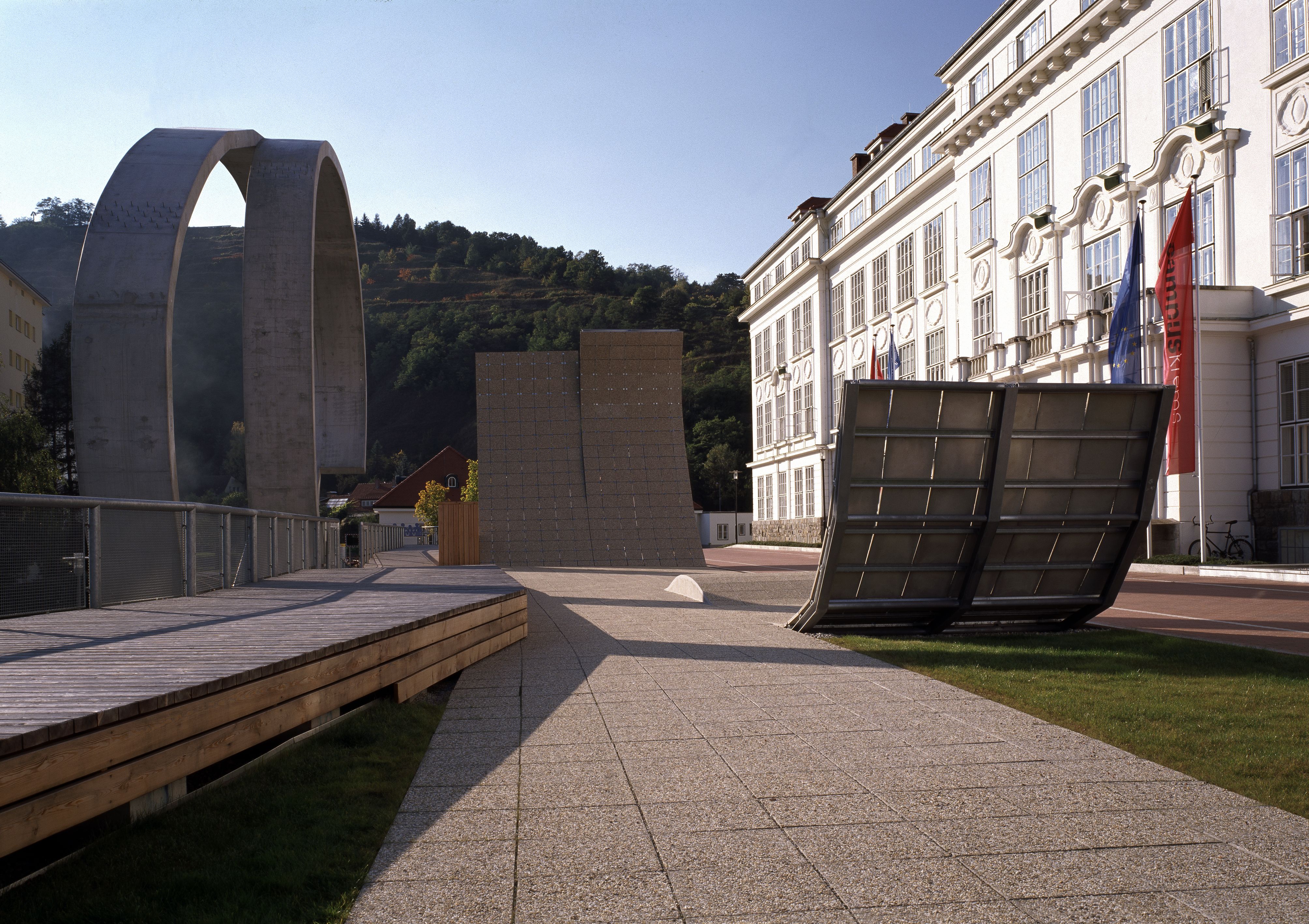 The architects' design of the forecourt has created a striking entranceway to the Danube University Campus grounds with an approx. 15 metre high Loop as well as a recreational space for students. The differentiated design caters to different needs by adding to the existing paths and supplementing them with additional areas.