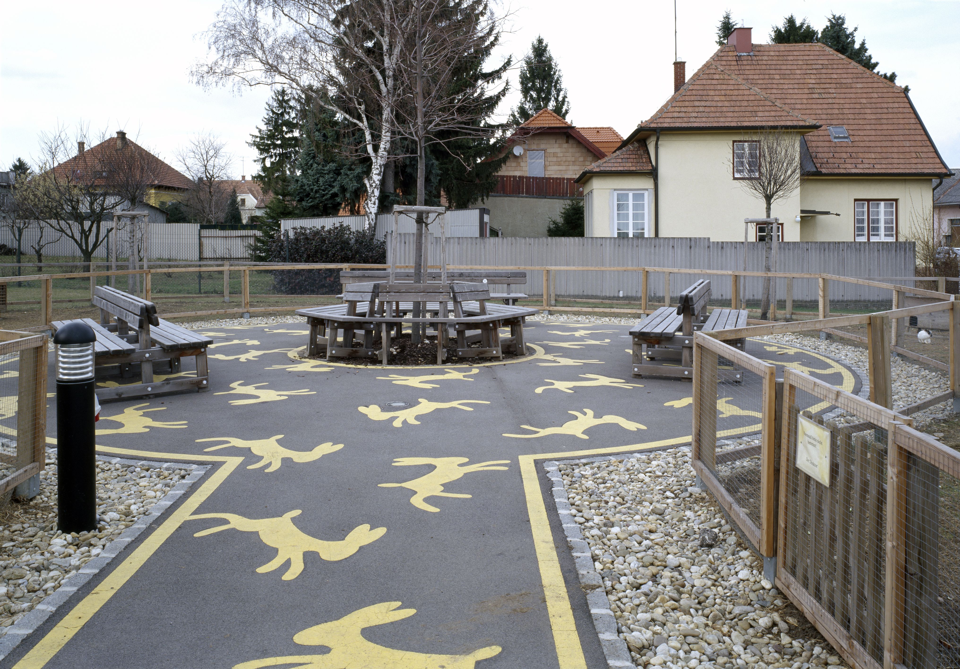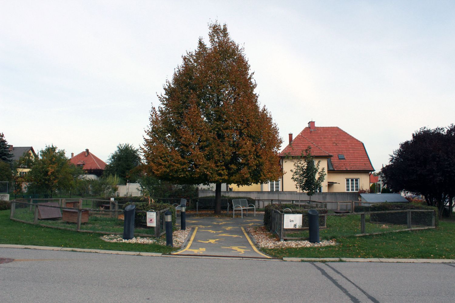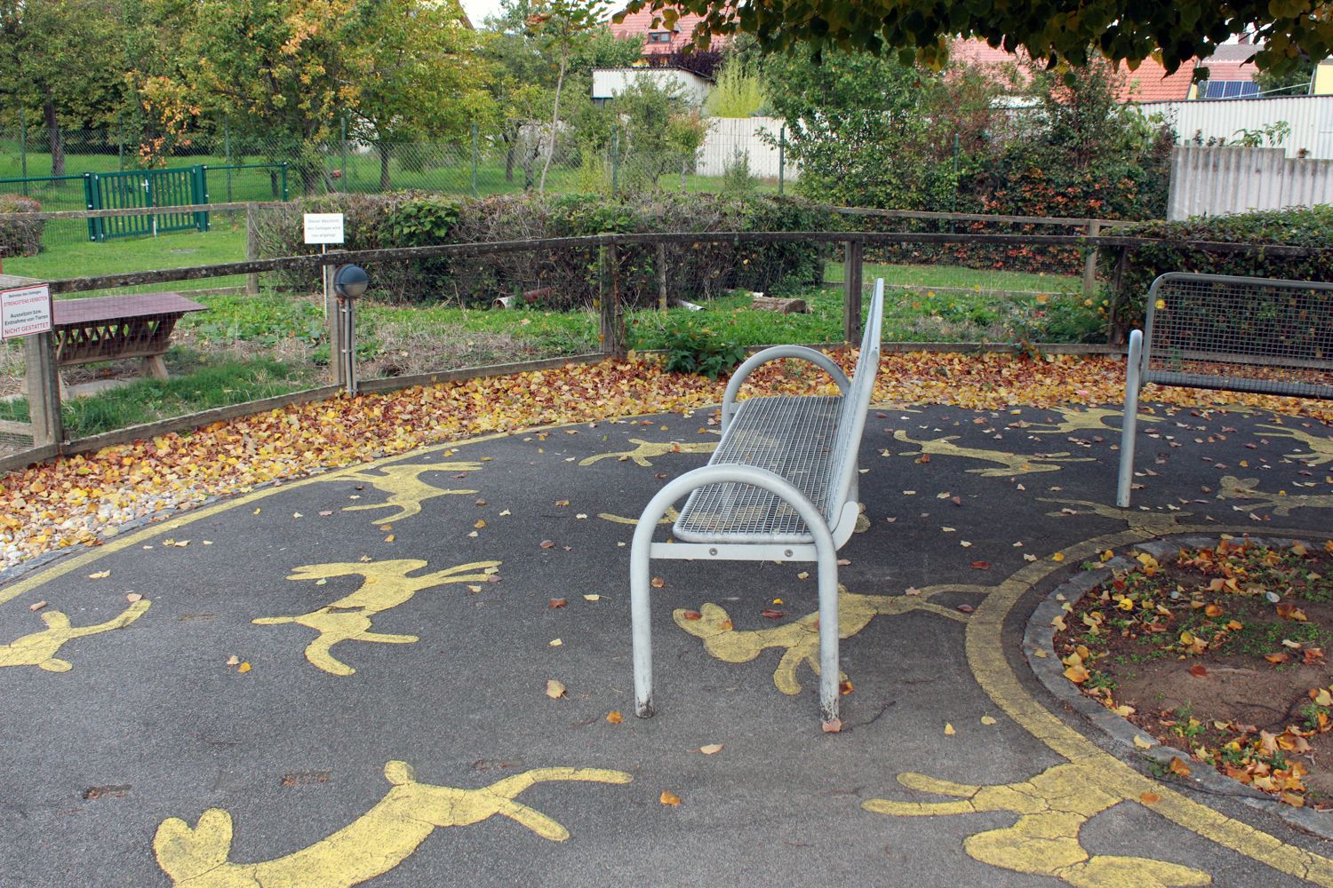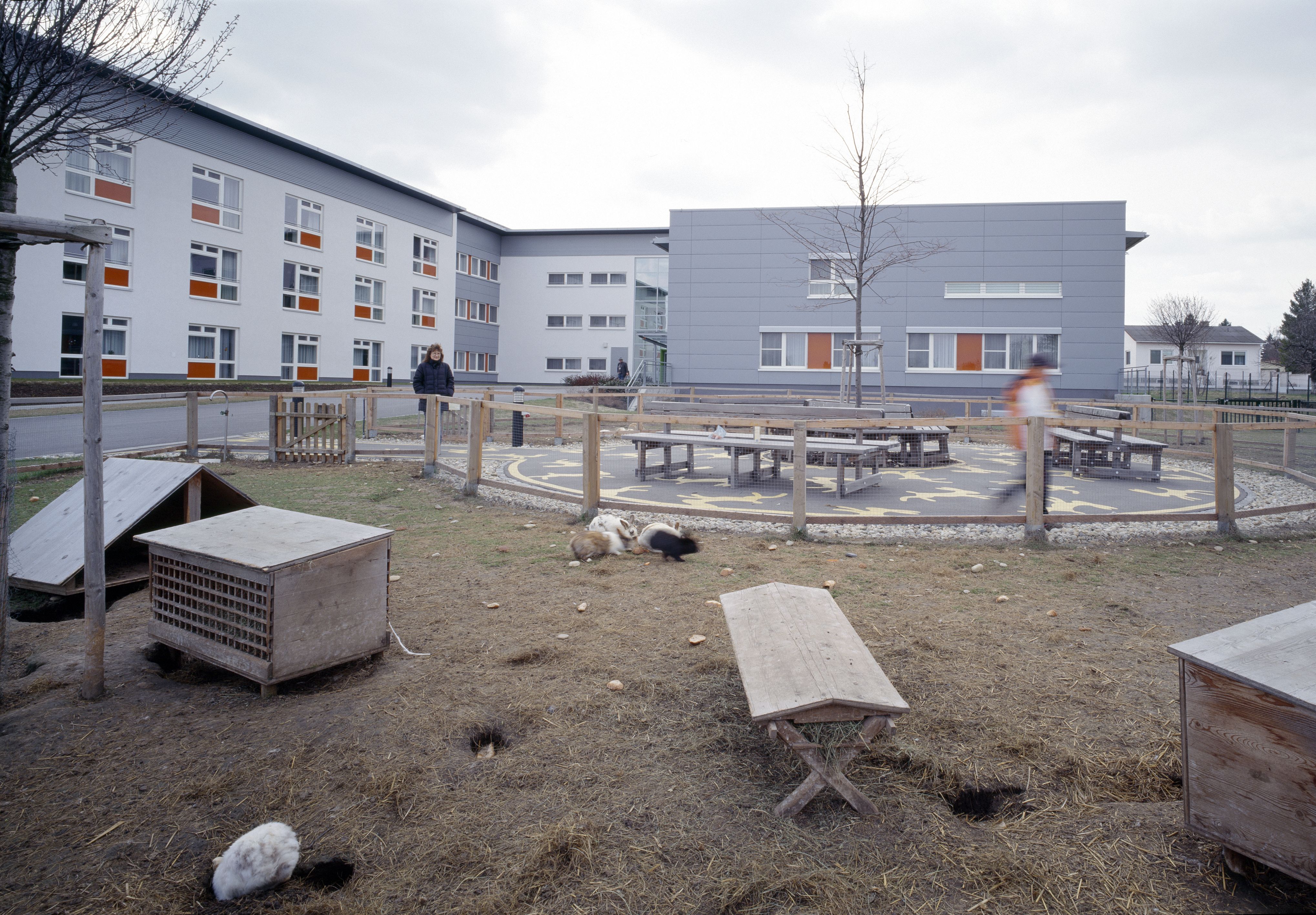 The concept for the newly built senior citizens home combines a purely artistic approach with a social one. It includes the planting of the courtyard with a larch tree and a round bench built around its trunk, additional wooden benches, a hare run with live animals as well as stylised depictions of hares on the surfacing.