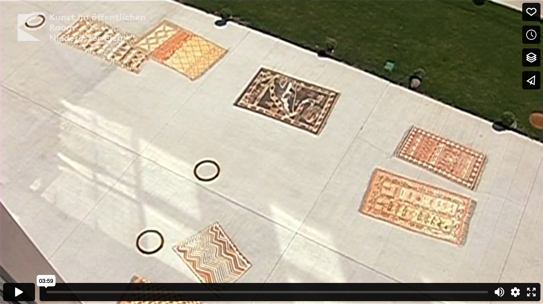 Andraschek & Lobnig have transformed the Forum Campus Krems into a marketplace. 21 carpets are spread across the courtyard. These carpets have been set into the concrete, lie on the lawn, nest in the buildings, or slip under the glass façade, running on inside. The material used for the carpets, small Venetian enamelled tiles, combines a classical technique, that of the mosaic, with the pixel world of the computer and the symbolic composition of early-Christian mosaics with oriental and Far Eastern cultures. The carpets have been set flush with the surface like precious inlay, functioning as a relaxed ornament on the square. The carpets are based on ones found by the artists with the Berbers, Kurds and Tibetans. Andraschek & Lobnig draw an analogy between the Oriental culture of hospitality and the communication with the traditions of the Anglo-Saxon educational establishment, the tradition of debating and discussion, which is made possible by living together on a campus. "With the idea of using carpets from different cultures we wanted to emphasise the international nature of the new university architecture, the faculties and the users of the university, and to focus on science, education and intellectuality as an all-embracing uniting factor in promoting understanding."