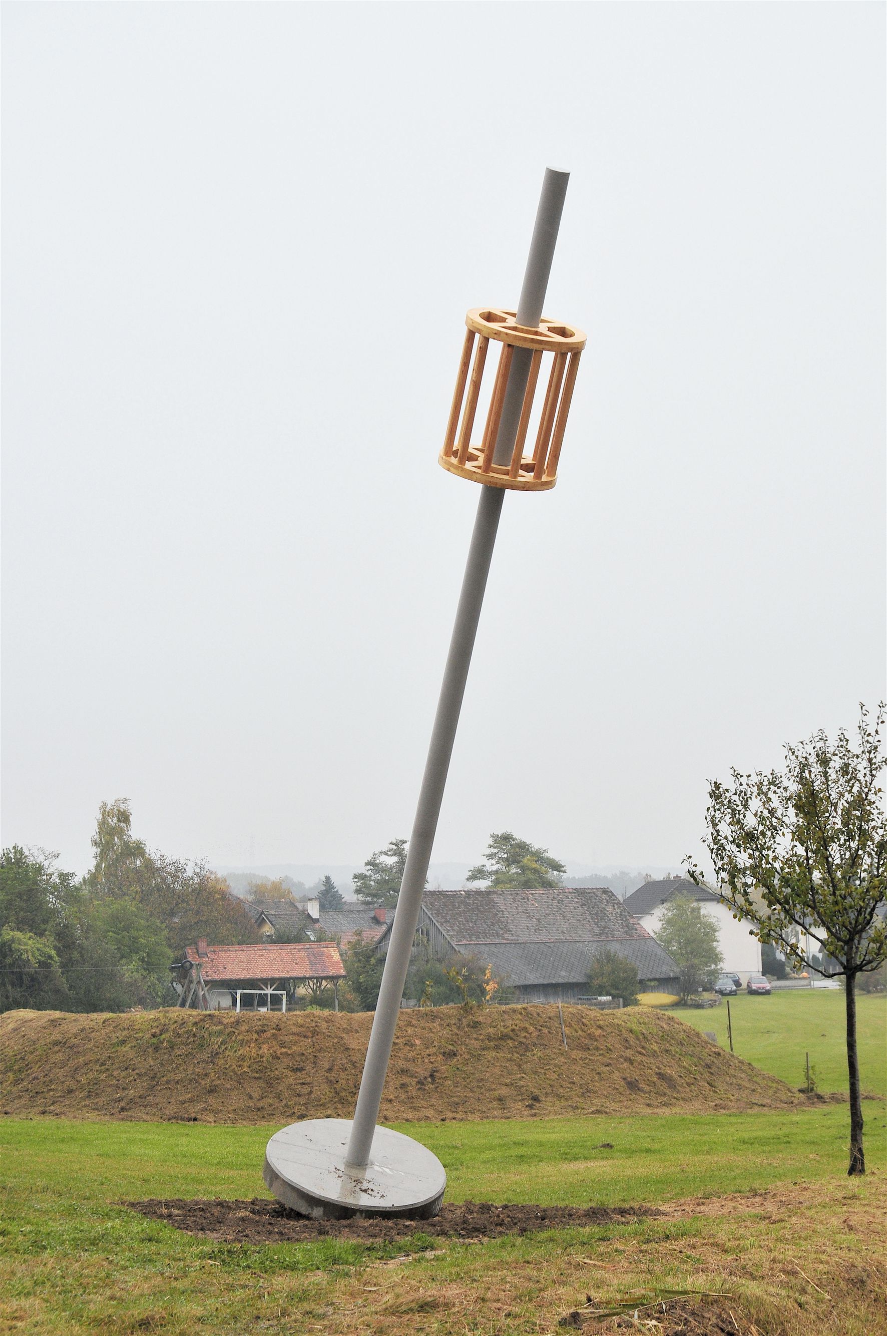 The Water Mill Memorial alludes to the history of the Schmidatal valley as well as to its current use as a recreation area. The elements of the monument are situated along a path — gearing, cog wheel canopy and lamp, as a direct allusion to the machines and the renewal of the protective roof to a roadside shrine — as a mosaic-like reconstruction of the vanished water mills of the Schmidatal. At the same time the memorial also references the tradition of sculptural garden adornments. As an artwork in a designed recreation area, the mill memorial is a 'terza natura' in the sense of Italian Renaissance garden theory, with moving visual axes and subtle changes in the intensity of the design of the intervention in the natural setting. Quotations are inscribed on the sculptures that relate to the use of energy. The combination of the subject matter of the images with the text, the view and the reference, leads to a new quasi-cryptic knowledge that requires deciphering by the viewer. Mechanical force and aesthetic power are closely related. The inscriptions stand for an intervention long past, the extraction of an element from nature for use, and so bring the artistic character of the memorial closer to that of the landscape surrounding it. The Water Mill Memorial transforms its setting into an emblematic garden, it marks the artificiality of the area and emphasises the leisure culture that leads the visitors to it and which has followed the demise of the mills.