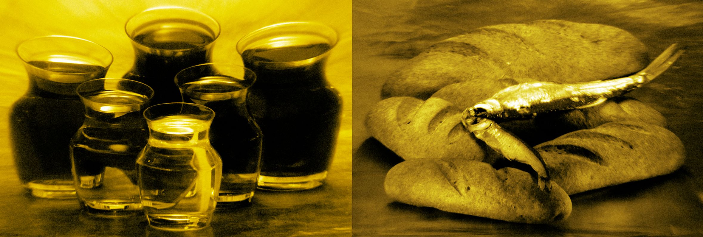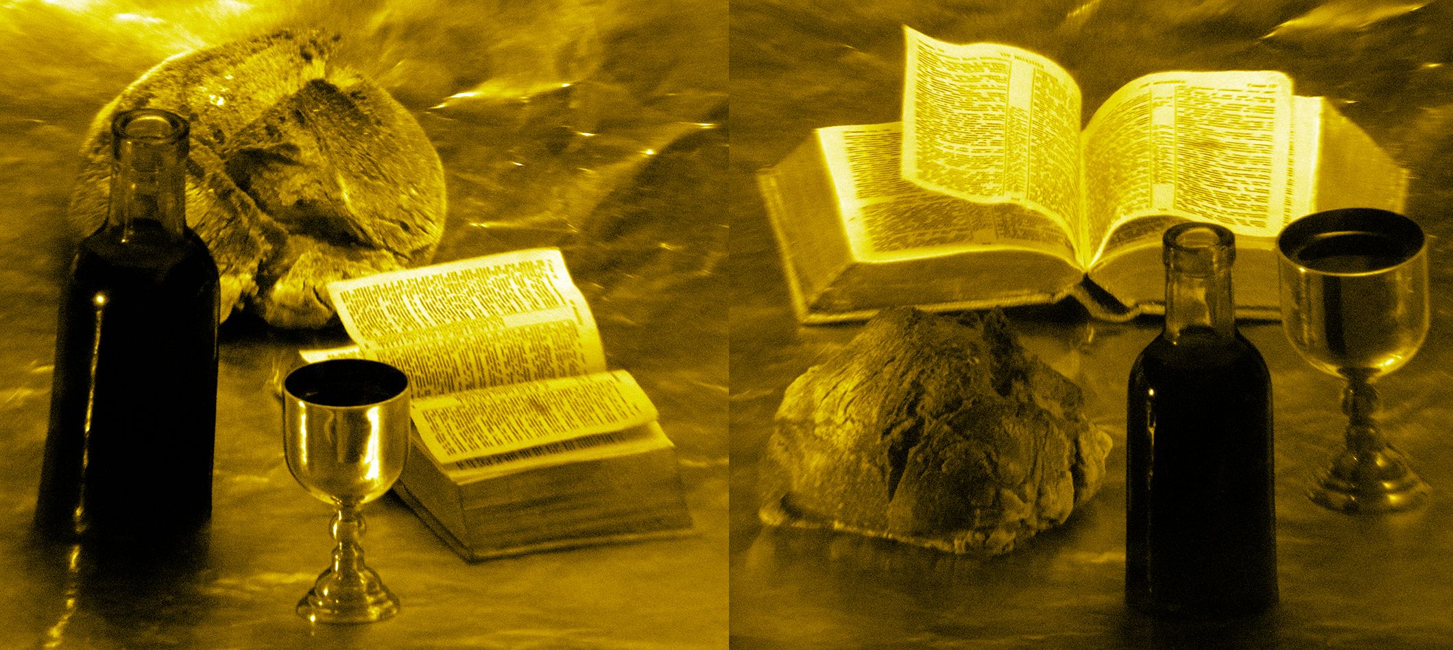 For his temporary installation in the church of Melk Benedictine Abbey, Gor Chahal engages with the tradition of the antependium, the adornment of the lower altar with richly decorated fabric. The artist installed nine large-format photographs that address core themes of the Bible. Three work groups of still lifes were completed for the eight side altars and the high altar: The Sacrifice, God Jehova, Bread and Wine, and The Miracle.