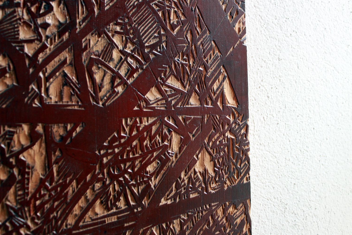 The altarpiece of 24 wooden panels shows the salvific history. The Cross of Redemption in the centre links the Old and the New Testaments. The wooden panels with overall dimensions of 8m x 3.3m have been worked with carving techniques. The raised elements are stained a reddish brown.