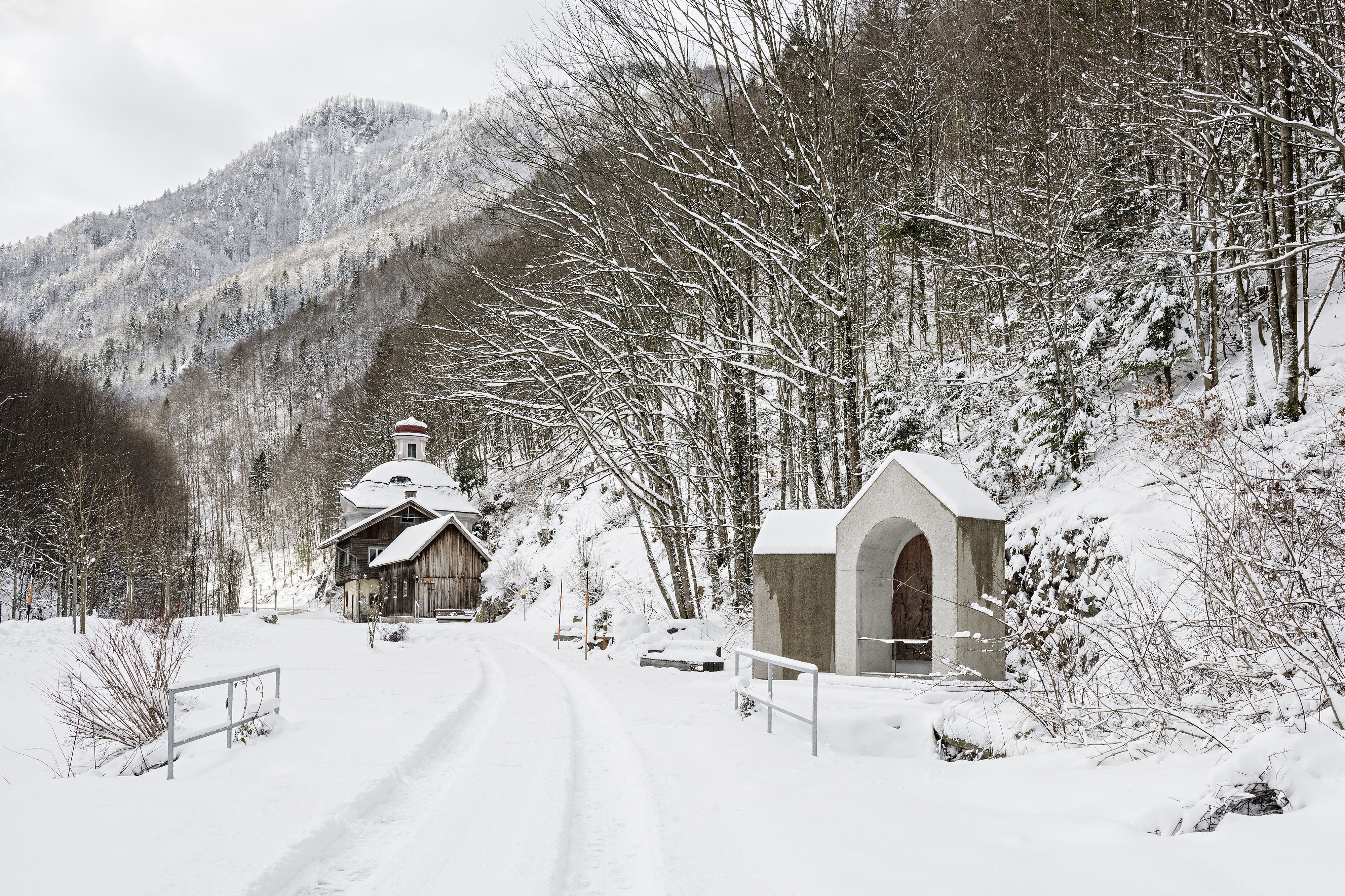 The Maria Siebenbrünn Baroque Chapel in Türnitz, Austria, is located on the Via Sacra, the oldest pilgrim route in Austria. Since it was completed in 1729, pilgrims have been stopping over here to drink the water from the seven springs that lend this place its name. Because the water was believed to have healing power, in addition to the chapel, the historic ensemble of buildings also included the living quarters and service rooms of a hermitage as well as a springhouse on the other side of the road. The latter consisted of a shell-shaped basin made of marble and probably a sculpture of Mary, which has since gone missing. In 2012, a competition for redesigning the springhouse was issued by the Cistercian monastery in Lilienfeld. At this time, only the basin was left of the original structure, which had been moved to its current position on the same side of the road as the other buildings when the road was widened in 1979. The art and architecture historian Henny Liebhart-Ulm and the architect Anna Wickenhauser, who won the competition, also found in the springhouse a Baroque wood relief depicting a flagellation, which had apparently been added to the house when it was relocated. The primary challenge for the two designers was to find a form that would take the typological characteristics of the historic ensemble of buildings’ architecture into consideration, while also representing its own unique temporal context. This meant that the architectural changes from the 1970s had to be undone in order to let the meaning of the original ensemble become visually accessible through contemporary materials.