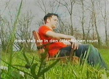 That was the theme of 'make art public', 30 second spots on art in public space in Lower Austria. Six Austrian colleges and universities participated. Due to the large number of submissions the Lower Austrian jury had a difficult decision to make. The award ceremony was held with a big party (moderated by Diane Shooman) at the Semperdepot, Vienna. As the results were so good, in October 2001 the two winning spots were shown in cinemas across Austria.
