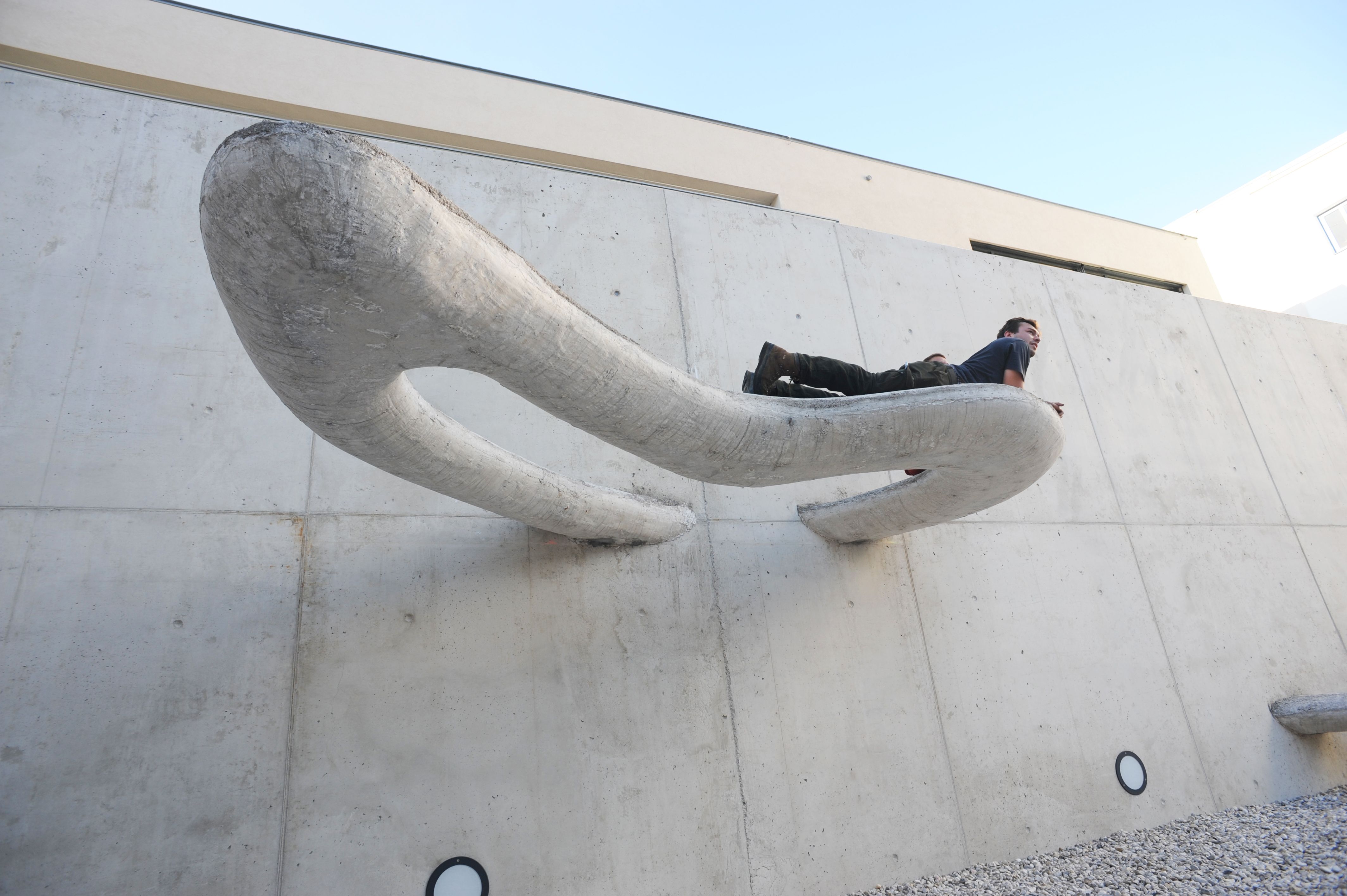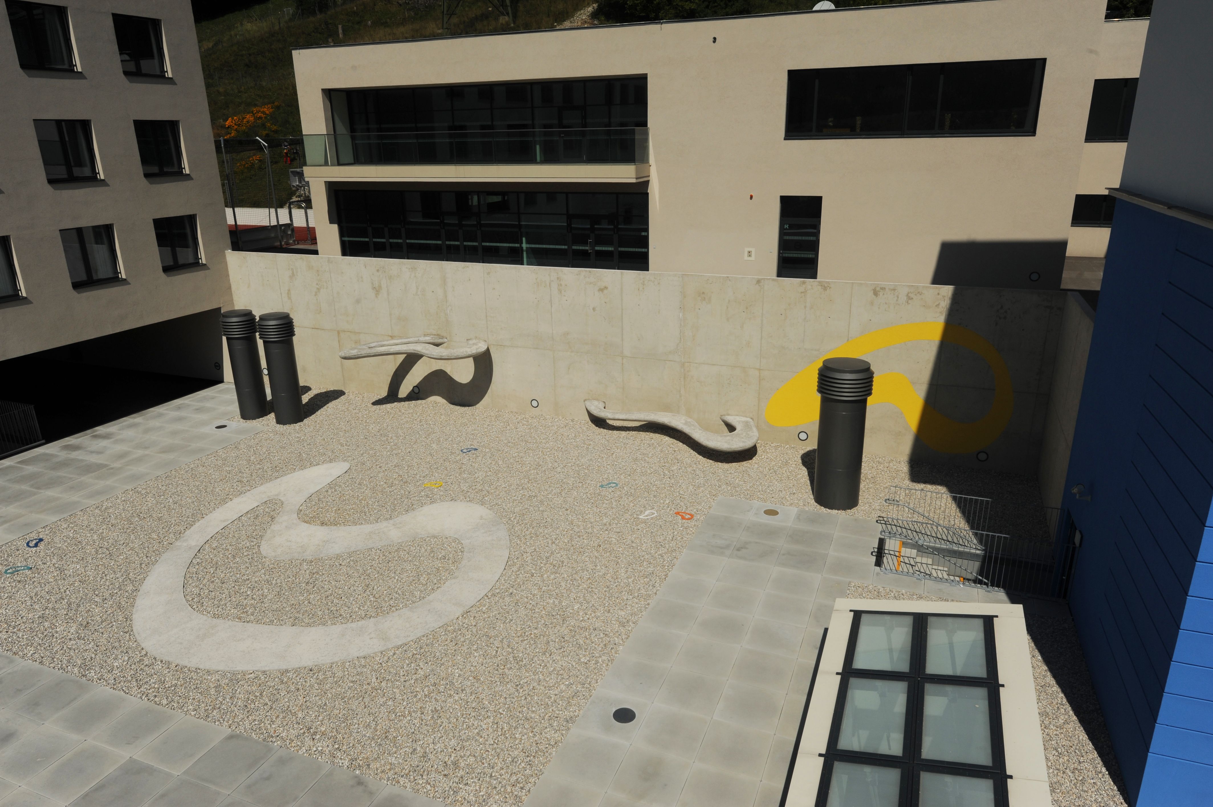 With its new building complex, the construction of which began in 2011 and which was completed this year, the Landesberufsschule für Tourismus (Lower Austria School of Tourism) in Waldegg is now a leading Austrian educational facility. Public Art Lower Austria held a limited competition for the school’s main courtyard and the student’s lounge, which was won by the artist Leni Hoffmann. Her multi-part artwork 'mischla' not only merges with the architecture, it creates its own playful sculptural situation that beholders can interact with and which constantly offers new perspectives on the interaction between architecture and artwork.