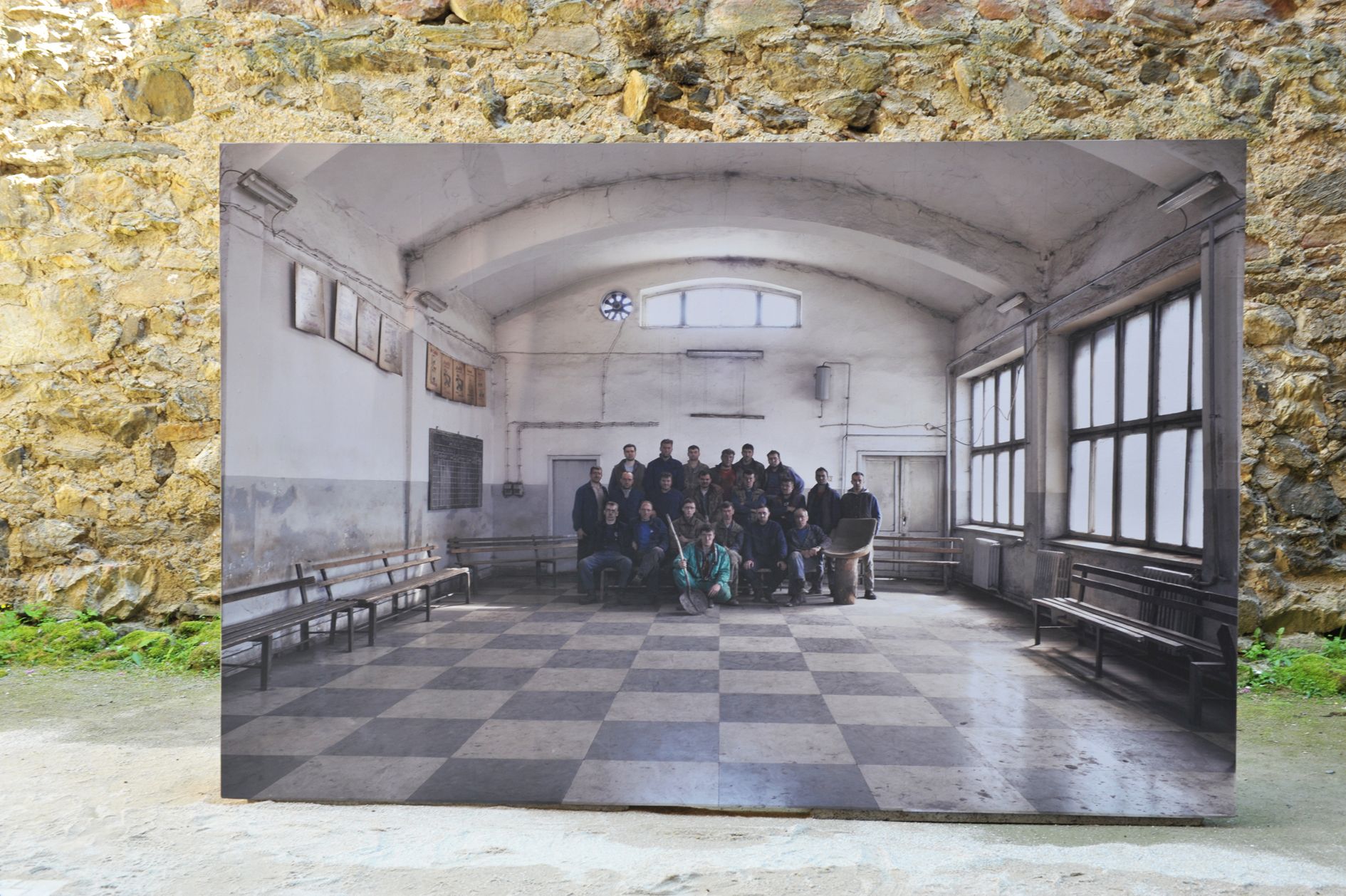 The Bosnian artist Danica Dakić is a professor of public art and new strategies at the University of Weimar. In her work, she investigates the role models of different groups. A central theme is the search for a space in which people can live out the identities they have created for themselves. “Ferleza” (The Reader) is based on the artist’s research in Brezo, a coal mine near Sarajevo. She not only refers to a film from the 1970s about the no longer pristine image of working-class heroes in Yugoslavia, she also creates a link between the present and the future in the 1970s. The mine, which was built during the Austrian-Hungarian Empire, is antiquated with obsolete technology, but Bosnia must keep up with its international competitors. The heroism of the workers comes from their working under these conditions every day. Dakić collaborated with the miners to create a photographic monument to today’s laborers that seems oriented toward the past. The title refers to the daily ritual of reading the safety guidelines in the Ferleza room before the shift begins.