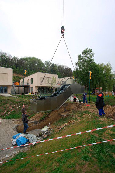 The artist collective gelatin won the competition for the integration of a mobile phone radio mast in the urban fabric with a humorous proposal that addresses the topic of communication and technology. Movements in the vicinity of the mast are translated into acoustic signals and made audible via a loudspeaker.