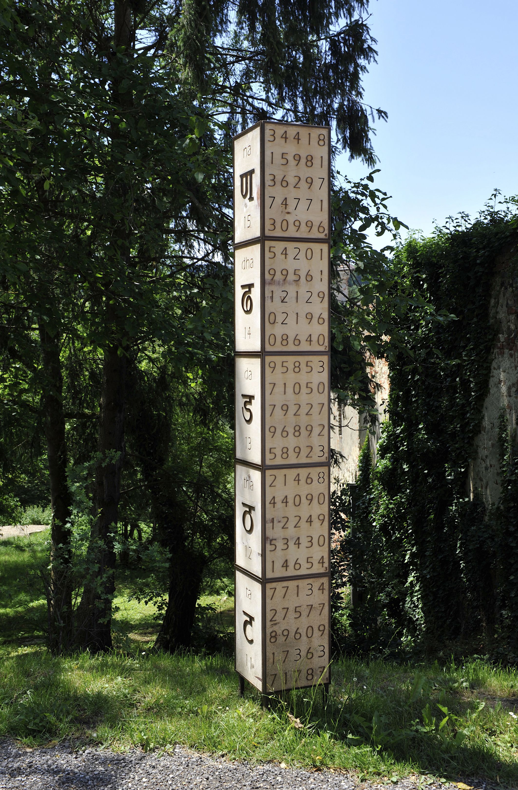 Walking up the steep path to the castle, we pass eight steles with numbers and signs written on them, like mantras. These steles radiate colorful light, depending on the position of the sun. They are an homage to the famous Indian mathematician and astronomer Aryabhata, who was able to accurately calculate the first five decimals of the number π. The Aryabhata steles display the first 1,000 decimals of this mysterious infinite number. The sound installation in the garden was created by Norbert Math. In terms of its tonal character, its structure is similar to classic Indian Raga music, which is essentially based on the relationship between two fundamental tones. Here, the tones consist of sound elements from GapStarPro’s first journey to India in 2009 and recitations of the Aryabhata code.